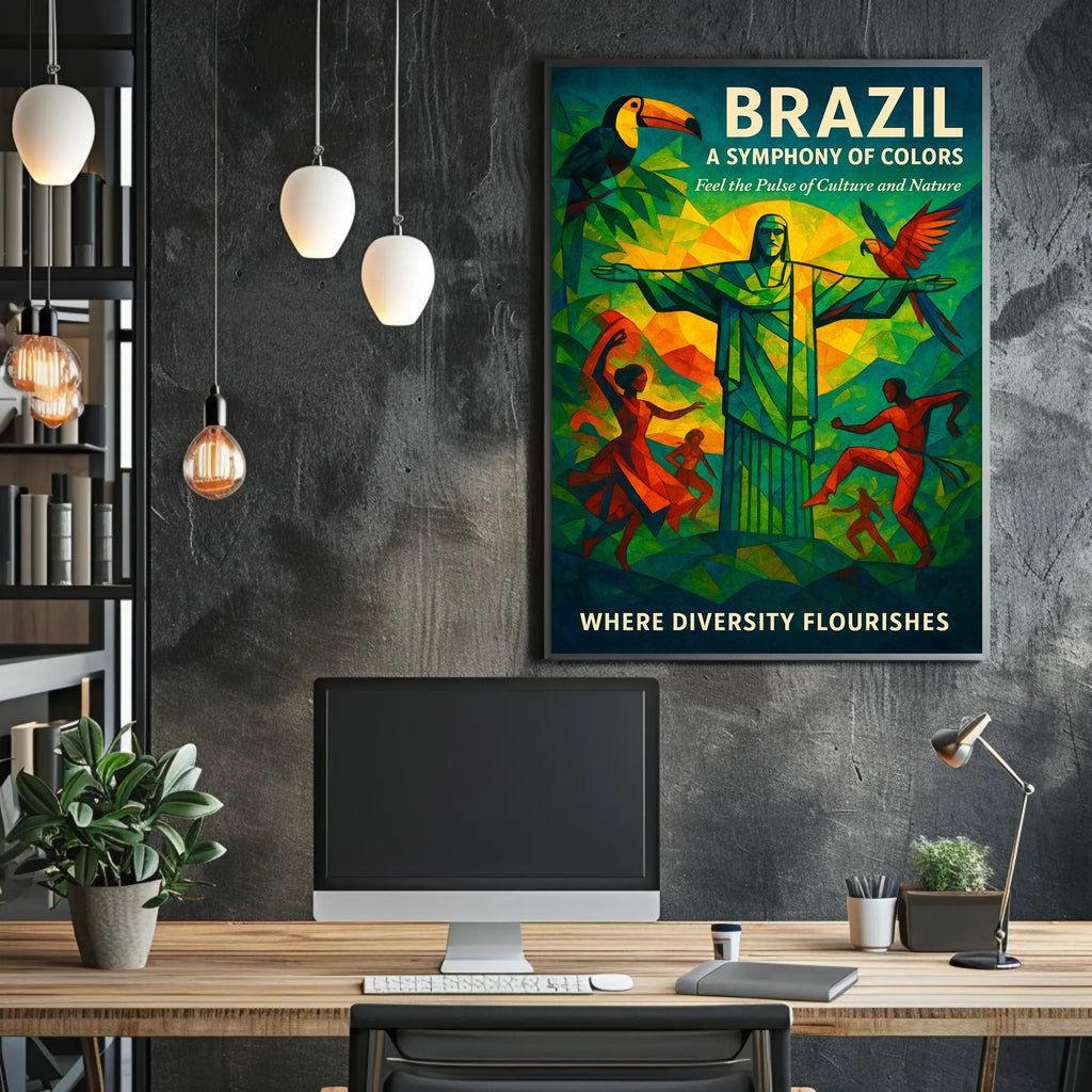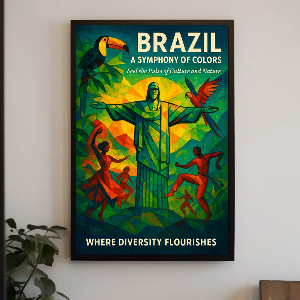 This poster blends travel-inspired imagery with decorative flair — a perfect souvenir-like gift or bold accent for your home. Add a splash of Brazilian spirit to your space and let diversity flourish on your walls.
