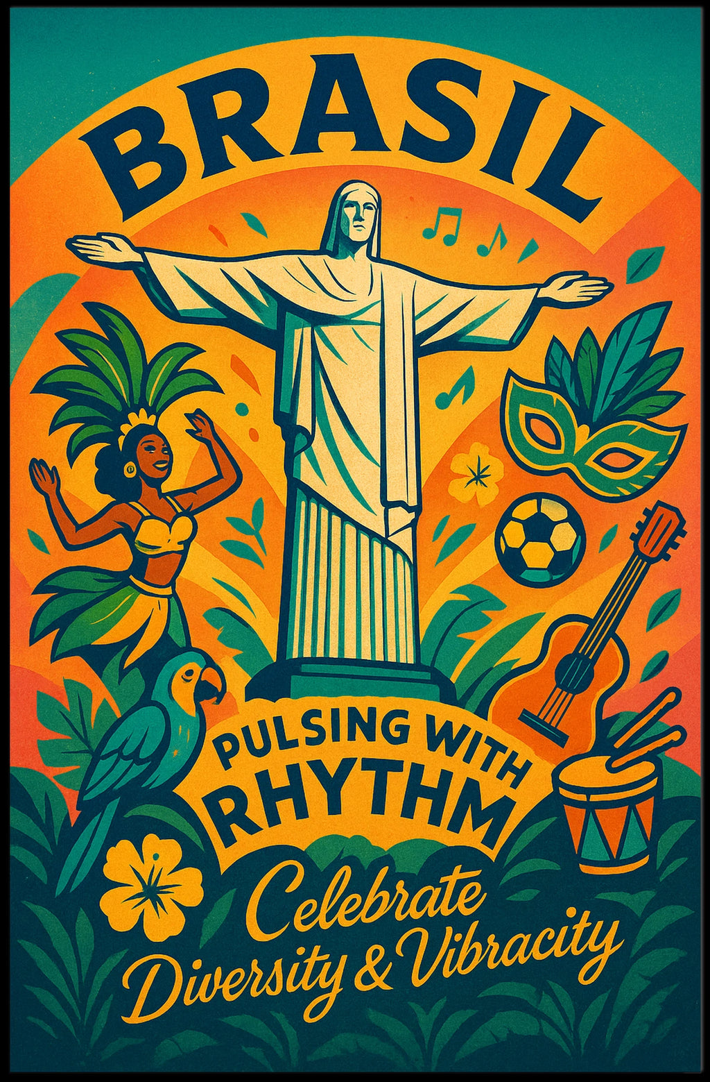 This poster captures the essence of Brazil Pulsing with Rhythm, blending vibrant color and dynamic scenery into a statement piece for your walls. Designed for decor lovers and wanderlust spirits, it brings warmth, movement, and a touch of real-world charm to any room.