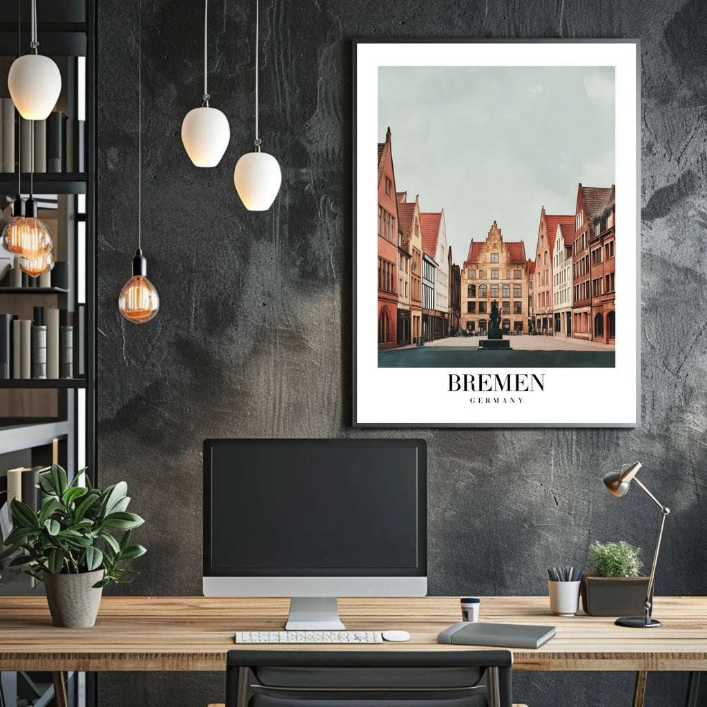 This Bremen poster is an instant way to introduce European charm and architectural character to any room — from living rooms and hallways to offices and boutique spaces. Add a touch of historic elegance to your décor with this scenic Bremen view from PosterGoat.