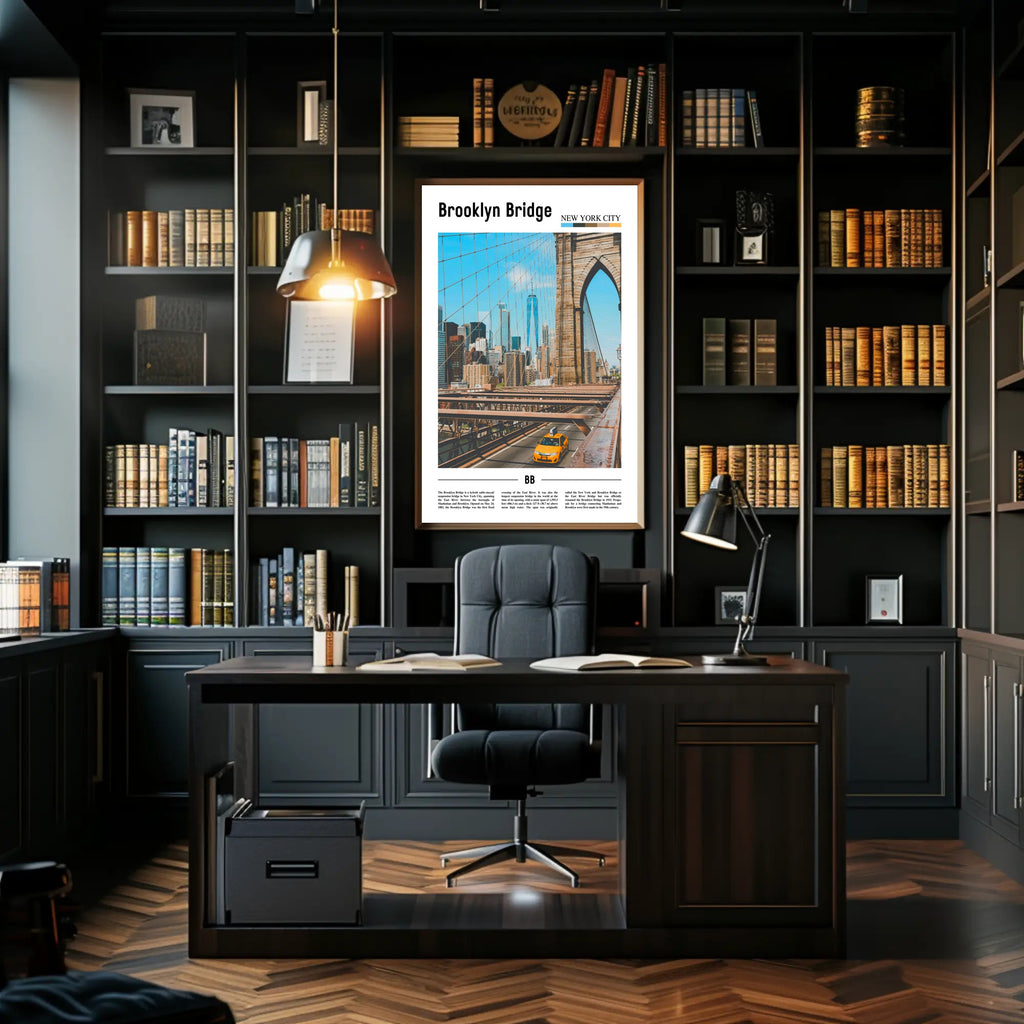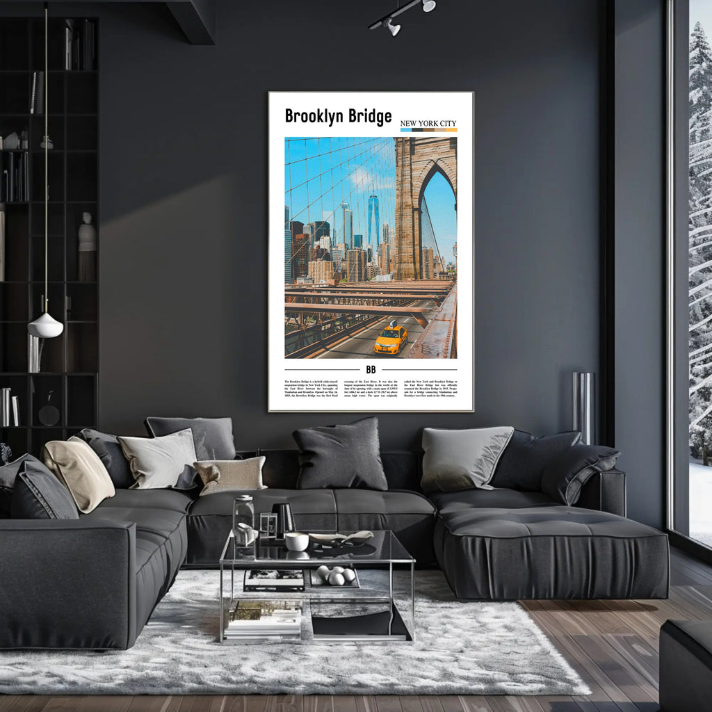 Bring home a piece of NYC with the Brooklyn Bridge Modern Cityscape Urban Travel Poster from PosterGoat — order now to elevate your walls with iconic New York style.