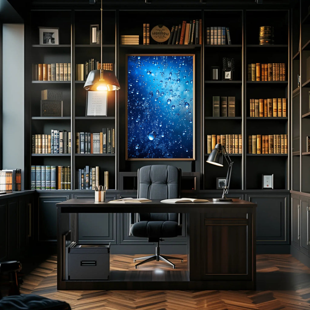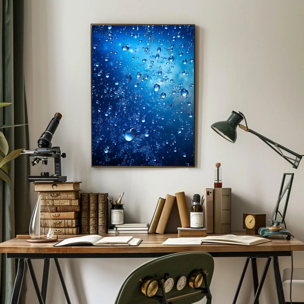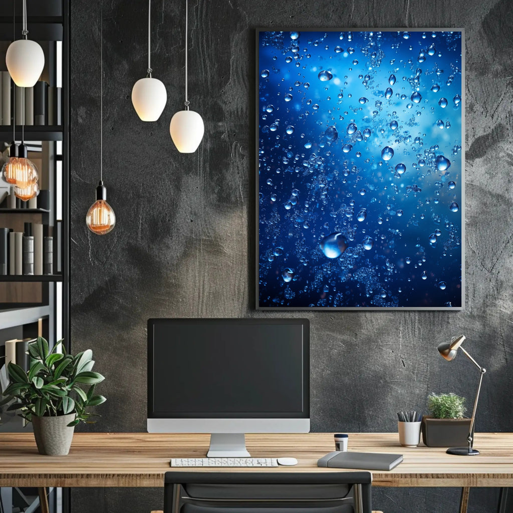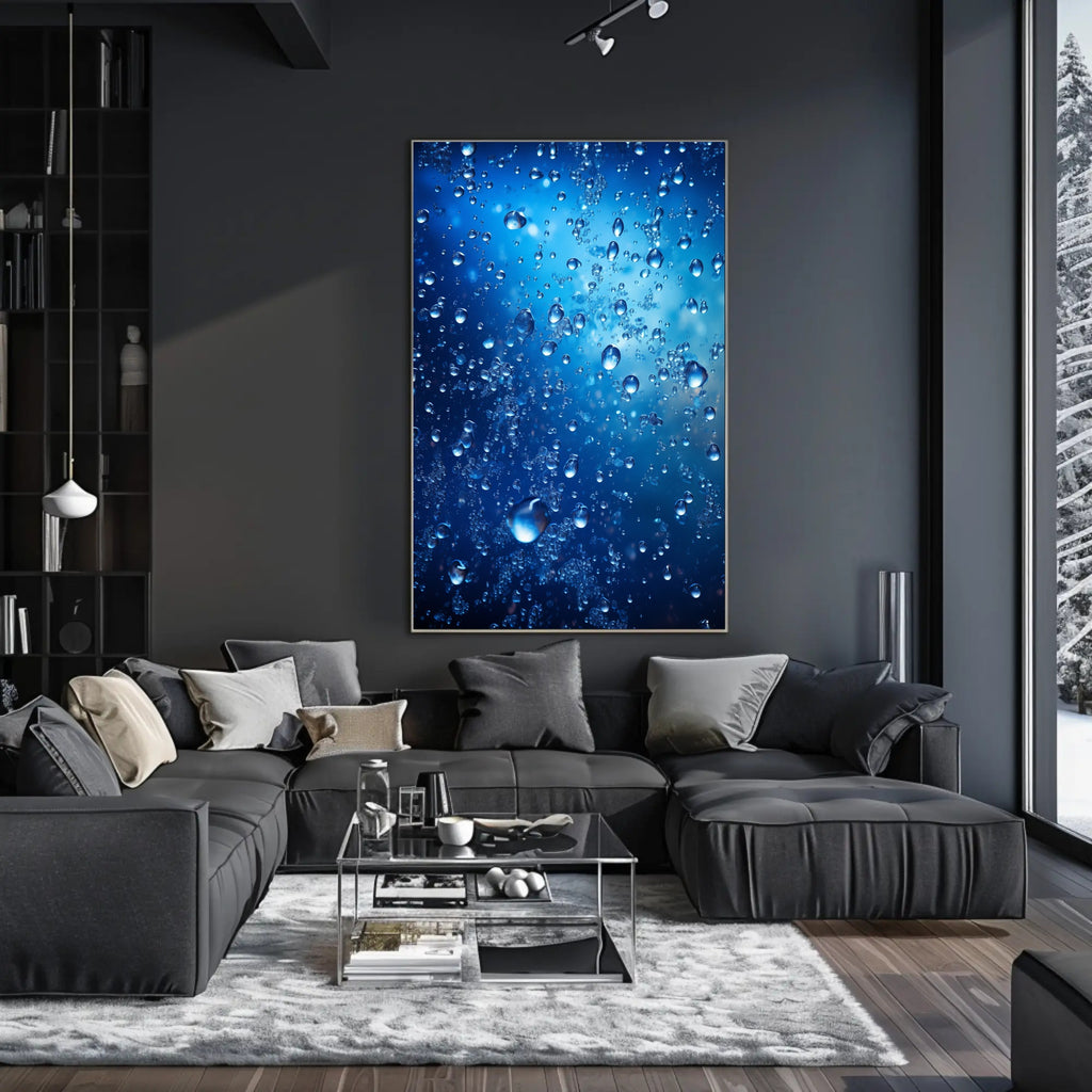 Eye-catching design: High-contrast close-up of water droplets and tiny bubbles that appear to float, offering a sense of depth and movement perfect for living rooms, offices, or bedrooms.