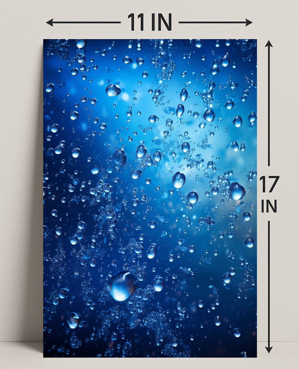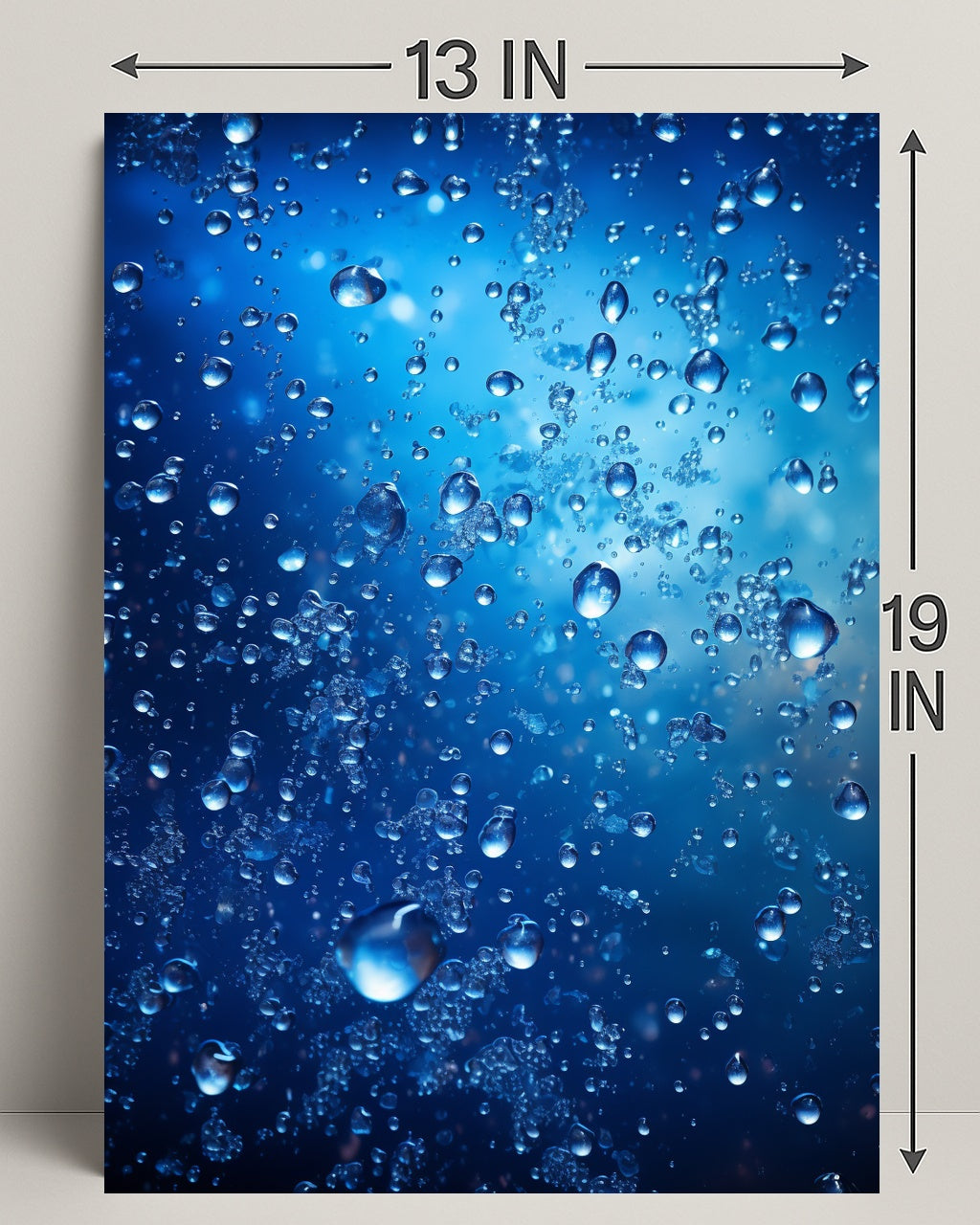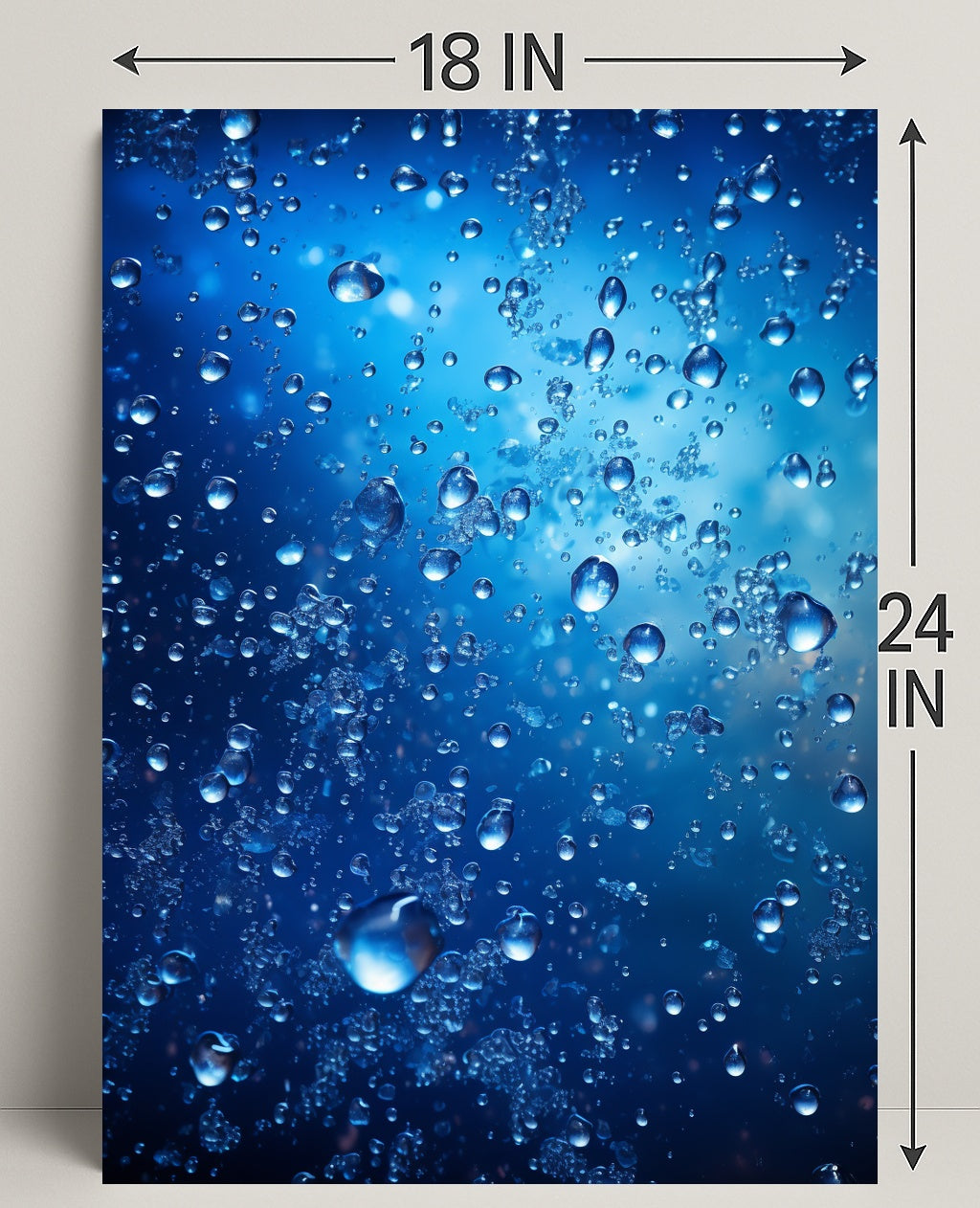 Bring motion and calm into any room with the Bubbles In Motion Poster from PosterGoat. This striking wall art captures crystal-clear bubbles suspended against a luminous deep-blue backdrop, creating a hypnotic, scenic composition that suits minimalist and modern interiors.
