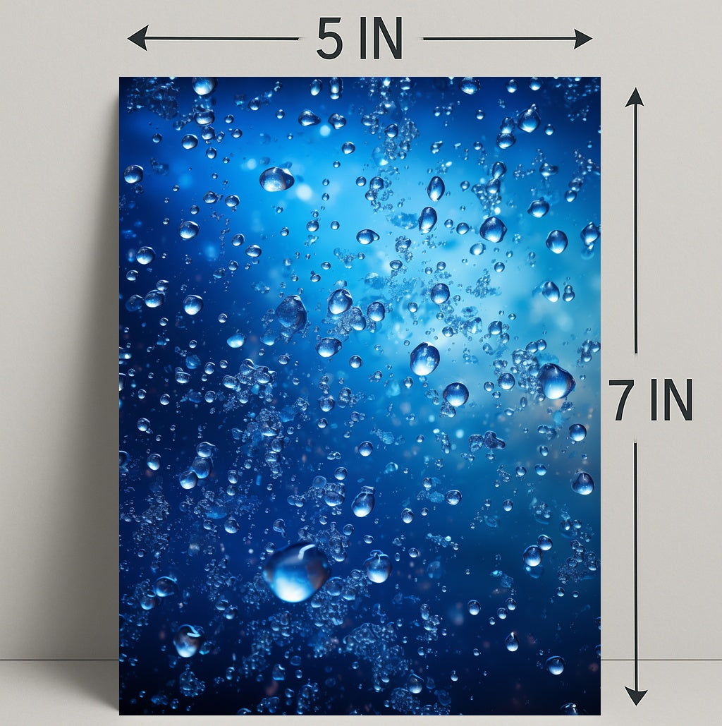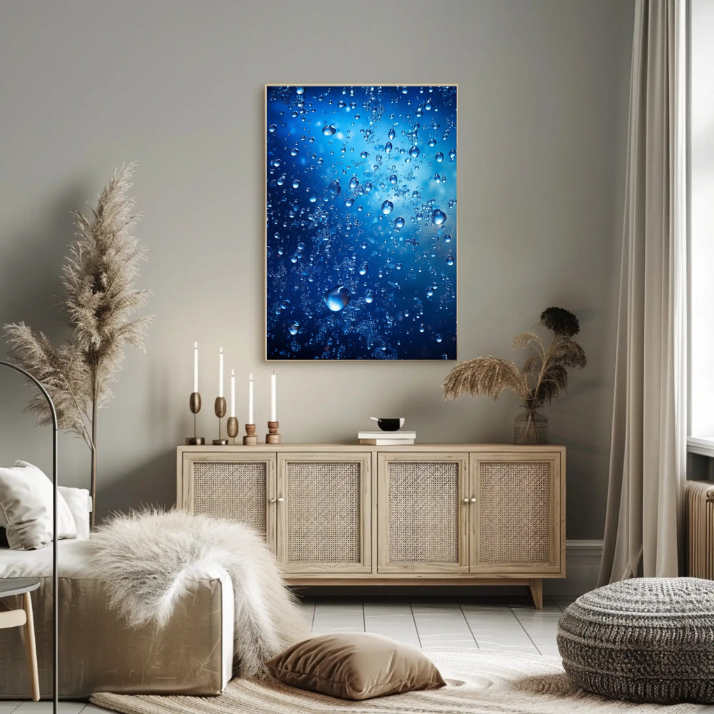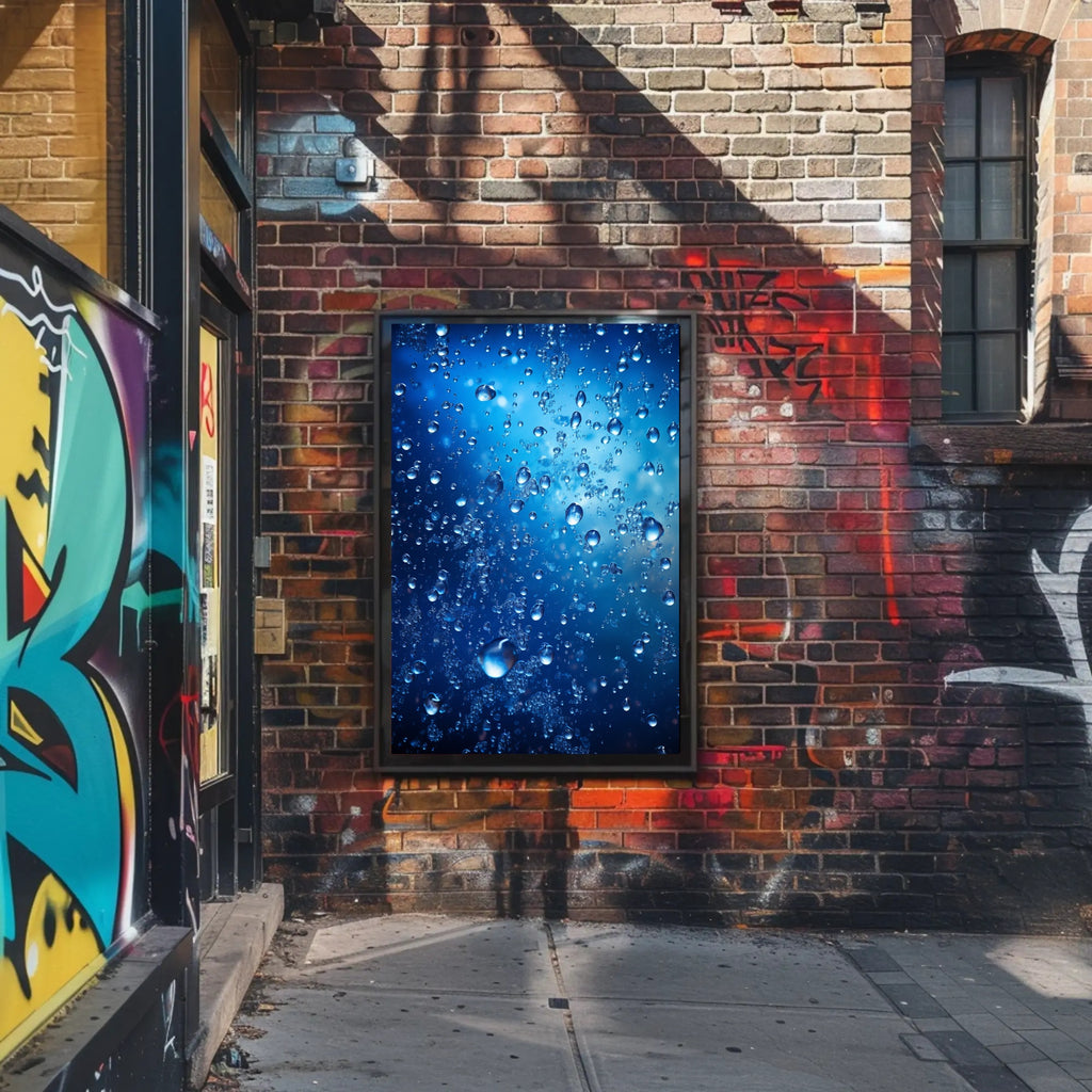 Bring motion and calm into any room with the Bubbles In Motion Poster from PosterGoat. This striking wall art captures crystal-clear bubbles suspended against a luminous deep-blue backdrop, creating a hypnotic, scenic composition that suits minimalist and modern interiors.