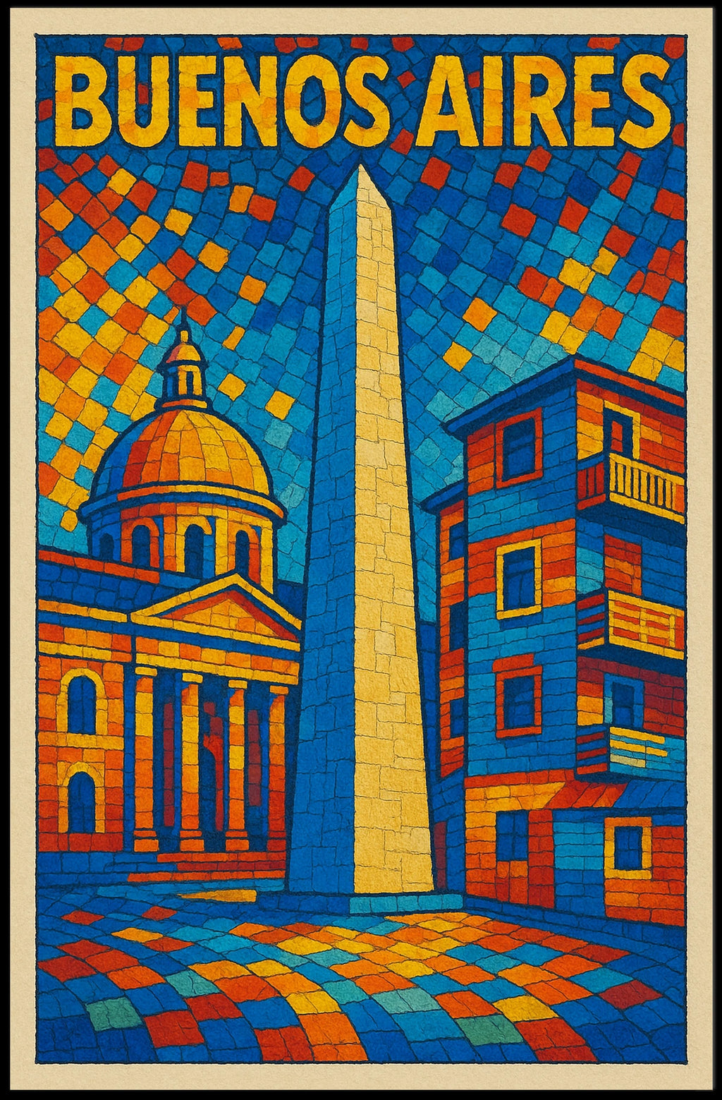 Buenos Aires Mosaic Poster celebrates the beauty of Buenos Aires through mosaic-inspired artistry, a timeless wall art piece designed for decor lovers and wanderlust spirits. It adds charm to any room with visuals inspired by real-world scenery.