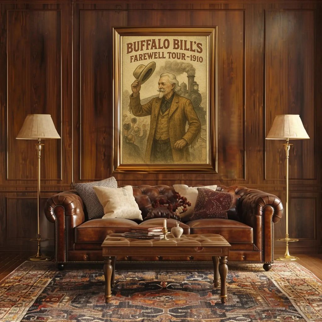 Bring home a timeless piece that sparks conversation and transports your space to a defining era of American history. Add this Buffalo Bill Farewell Tour 1910 Historical Poster Print to your collection today from PosterGoat.