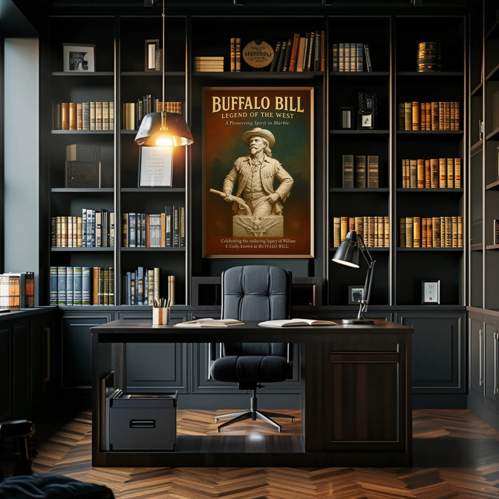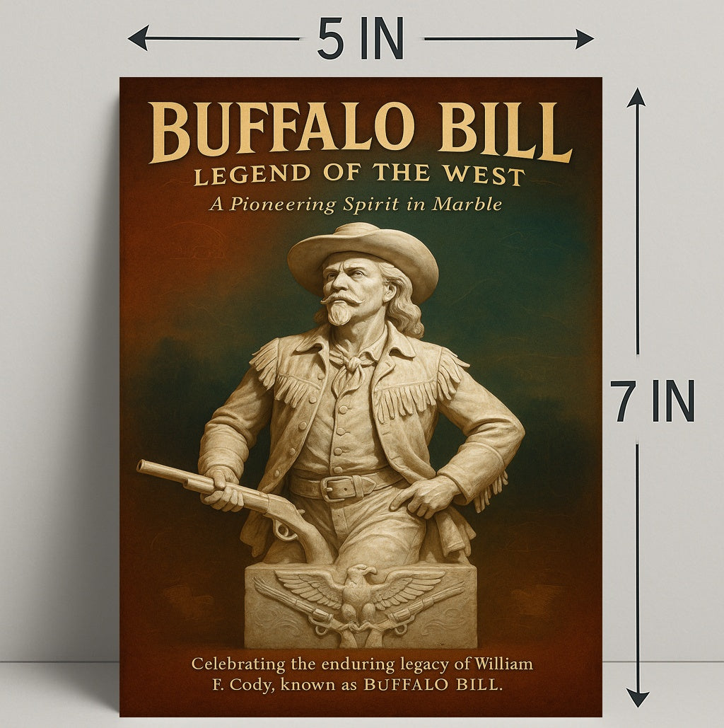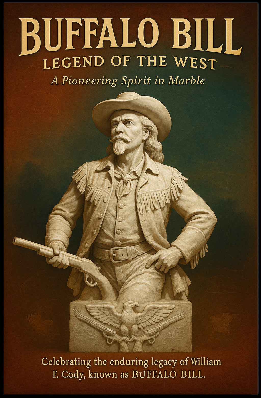 Buffalo Bill Marble Statue American Heritage Poster from PosterGoat is a striking wall art piece that honors the enduring legend of the Wild West. This timeless poster captures the spirit of William F. Cody, famed as Buffalo Bill, in a marble statue-inspired design.