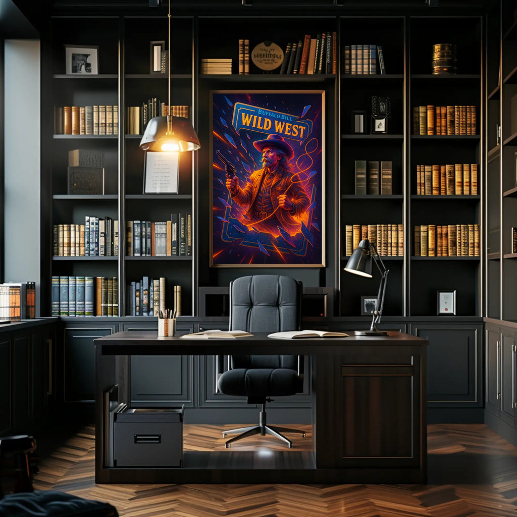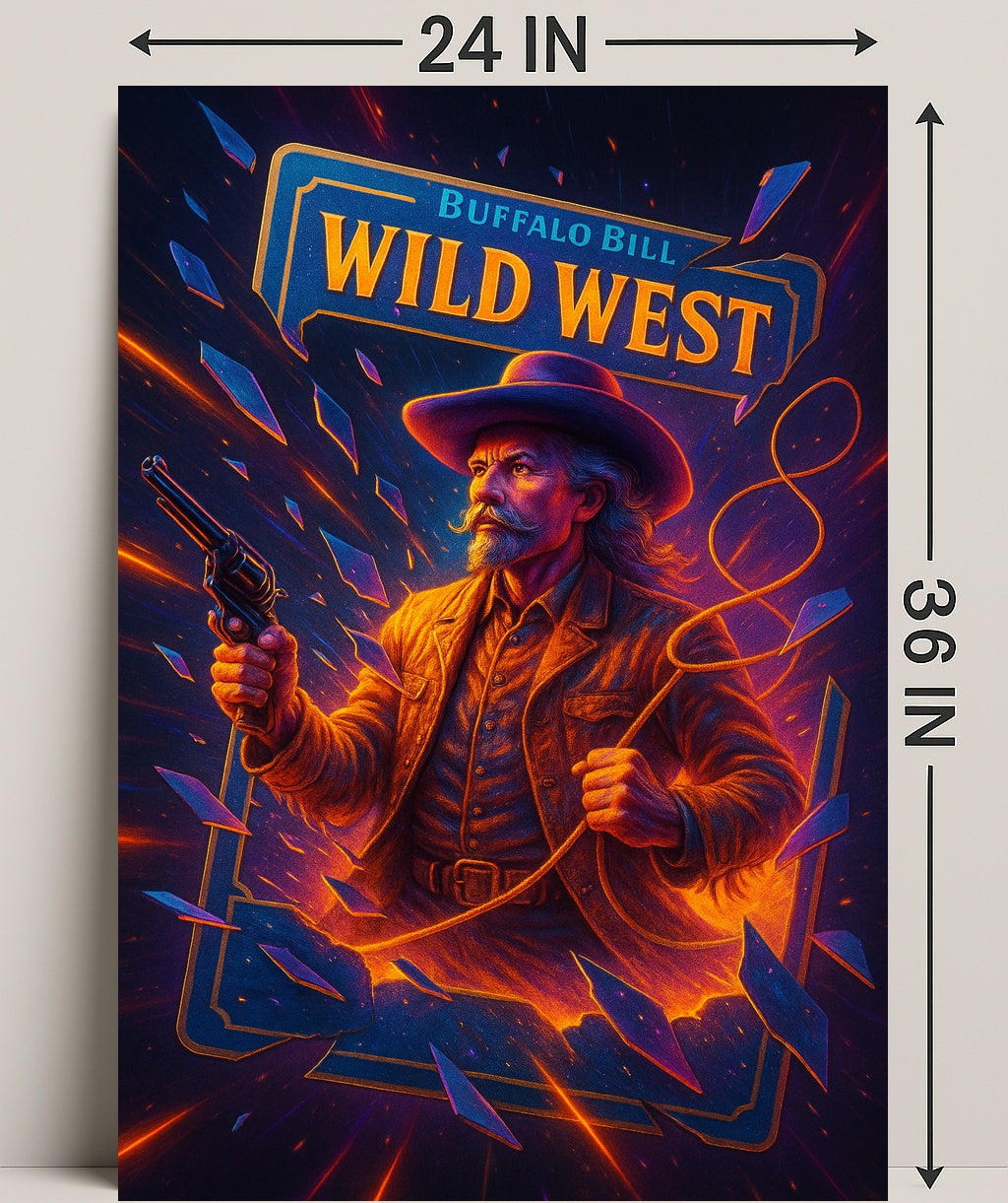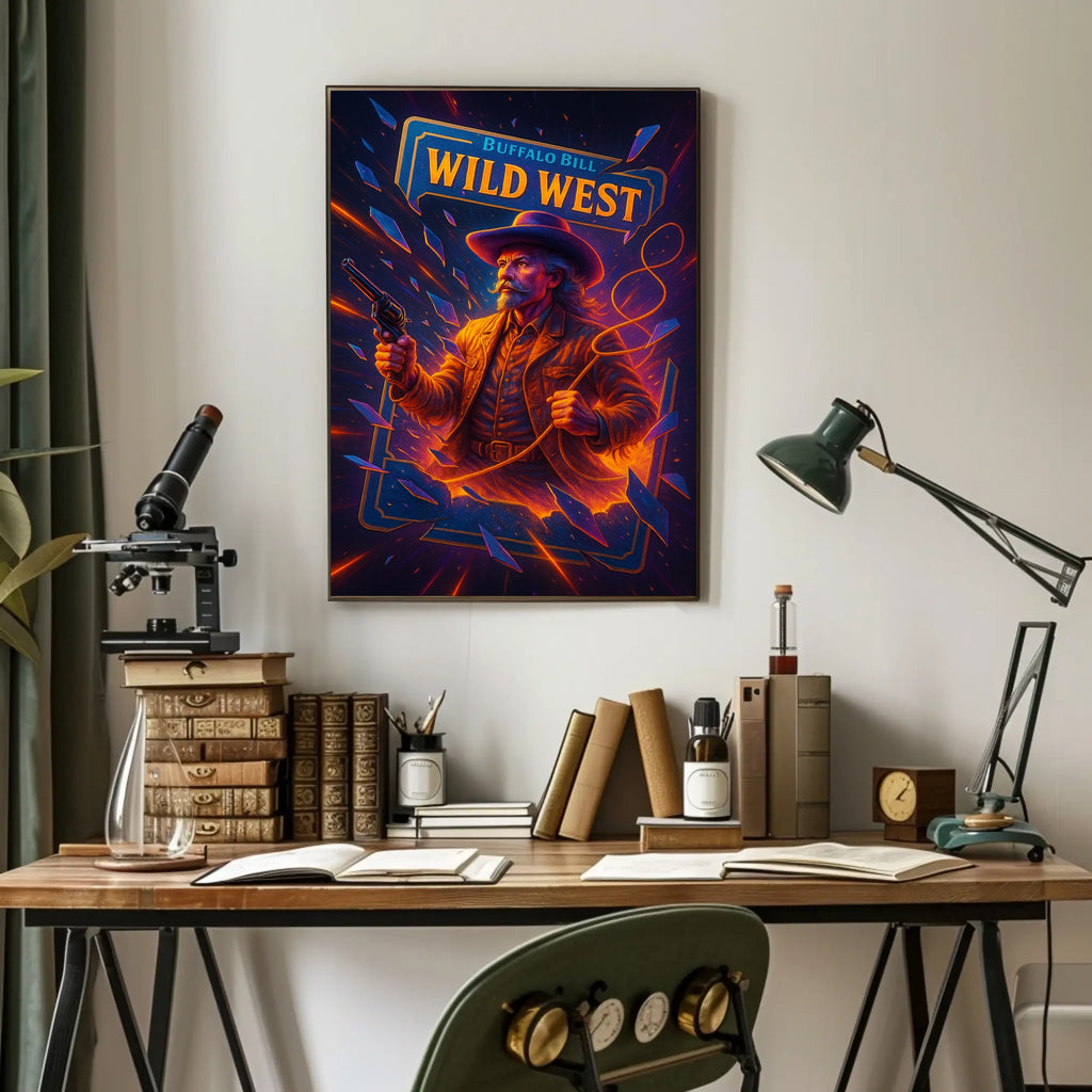 Add this bold Buffalo Bill Wild West wall art print to your collection today and elevate any space with frontier drama.