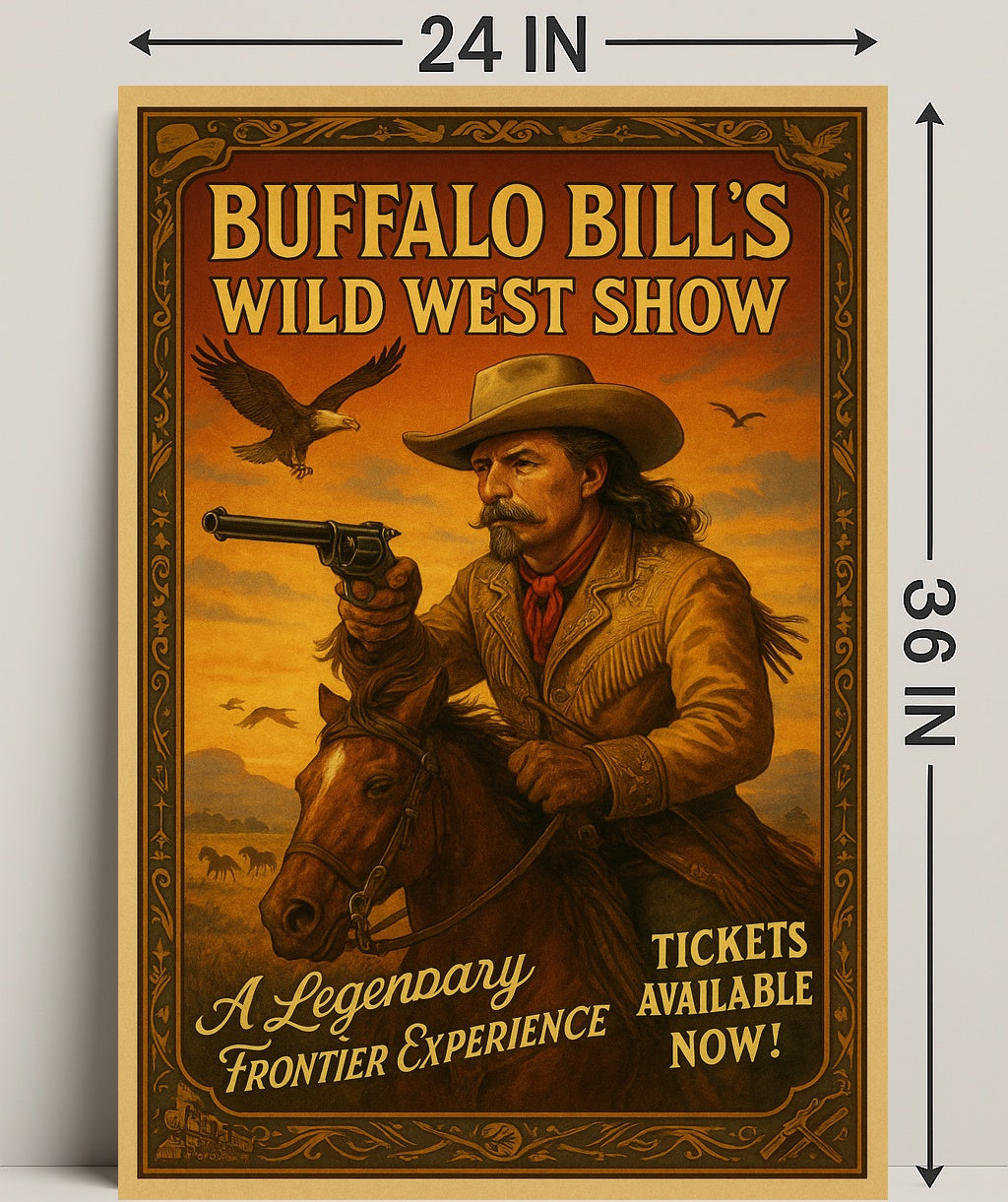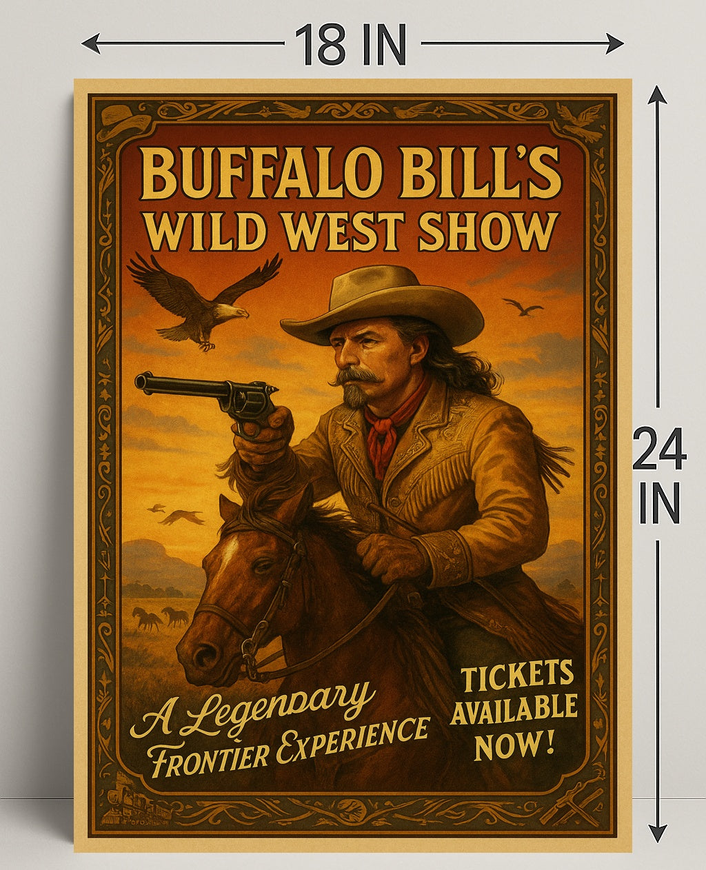 Designed to elevate any space, this poster print brings cinematic character to your walls. The vintage color palette and refined border create a nostalgic mood that pairs beautifully with rustic, western, or modern interiors alike. It’s an eye-catching centerpiece for living rooms, offices, hallways, or galleries and makes a memorable gift for fans of Western history and show aesthetics.