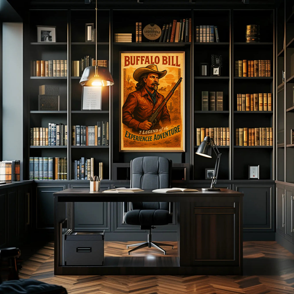 Buffalo Bill The Legend Of The Poster — a vintage-inspired wall art print from PosterGoat that brings the daring spirit of the Old West into your space. This bold artwork blends cinematic poster design with classic cowboy iconography for a striking centerpiece in any room.