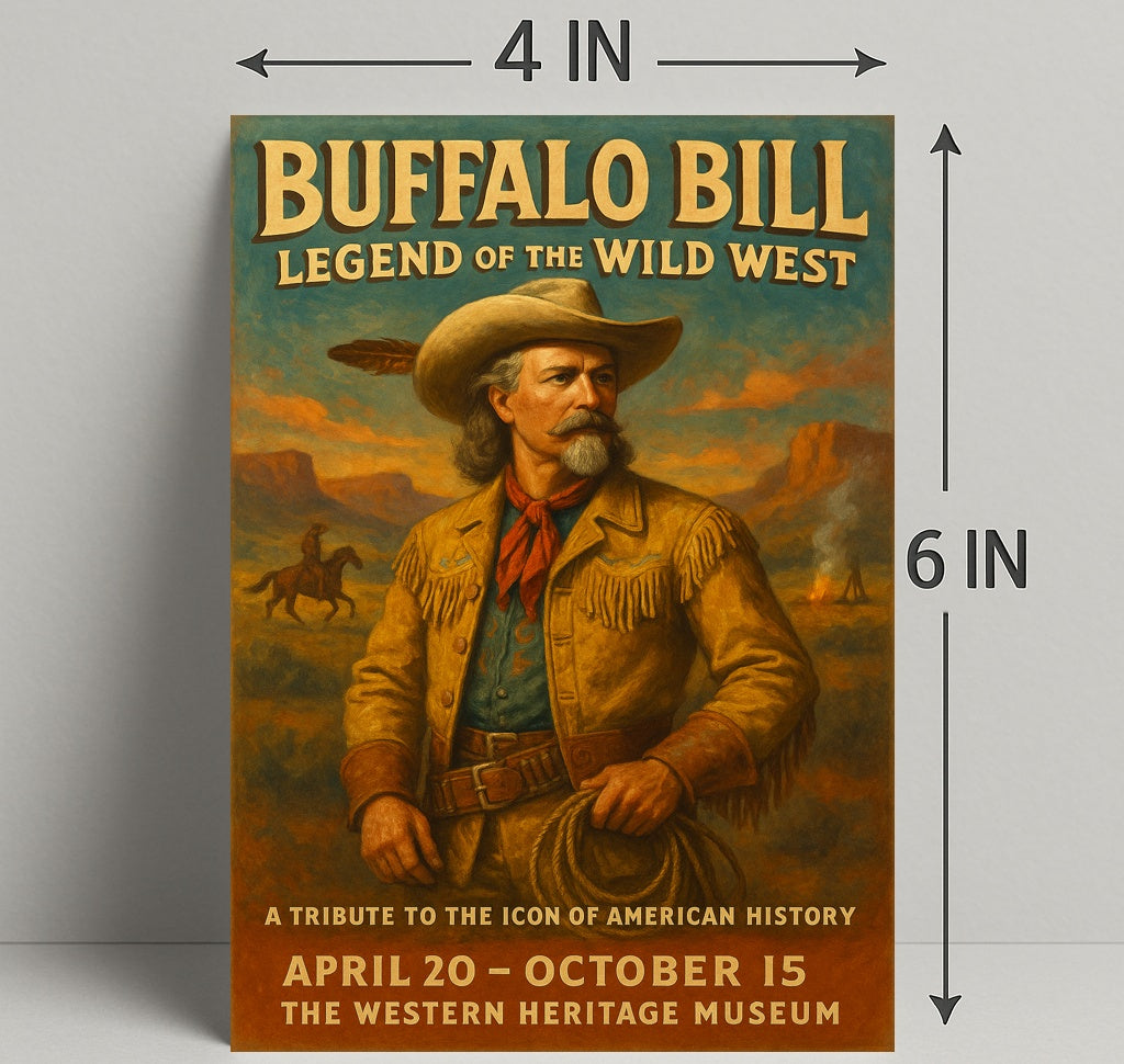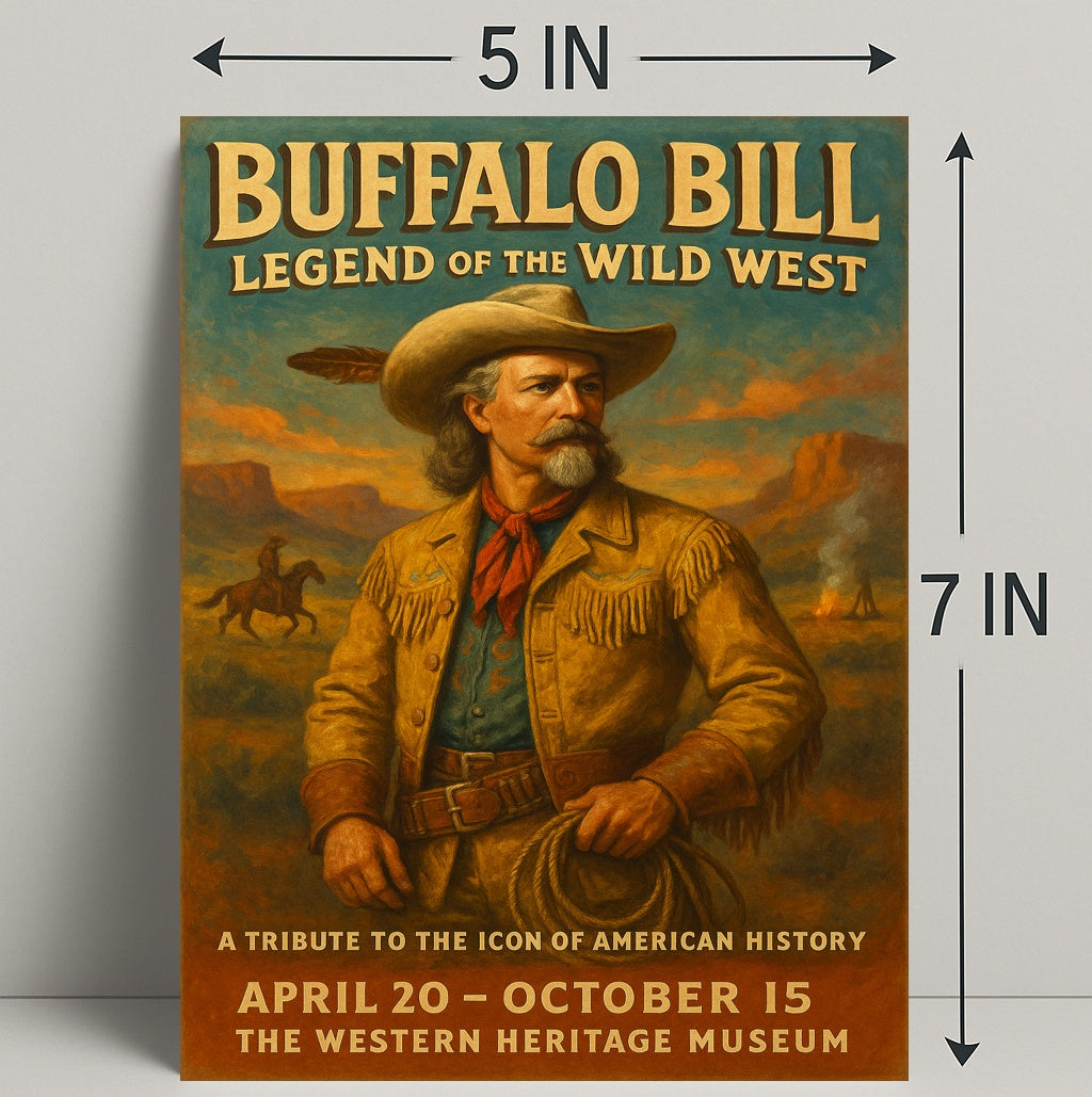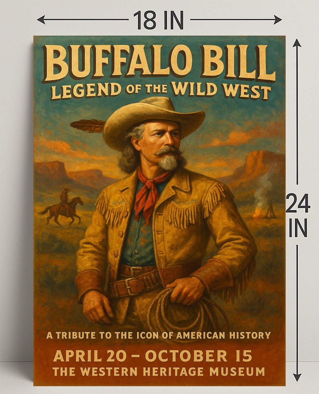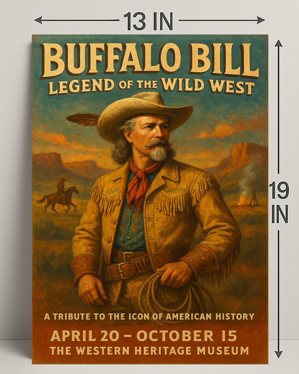 Bring a piece of American history into your home. Order the Buffalo Bill Tribute Poster from PosterGoat today to add timeless Wild West heritage to your space.