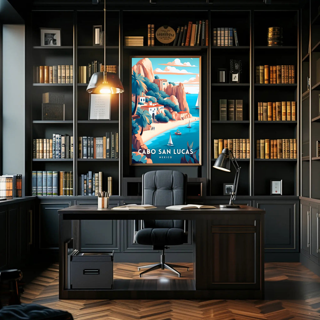 Bring the peaceful spirit of Cabo San Lucas into your home — order the PosterGoat Cabo San Lucas Tranquil Seaside View Travel Poster today and transform your wall into a tropical escape.