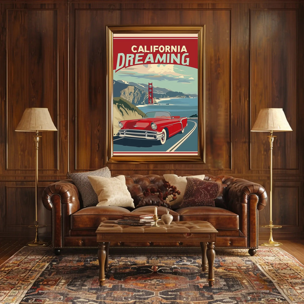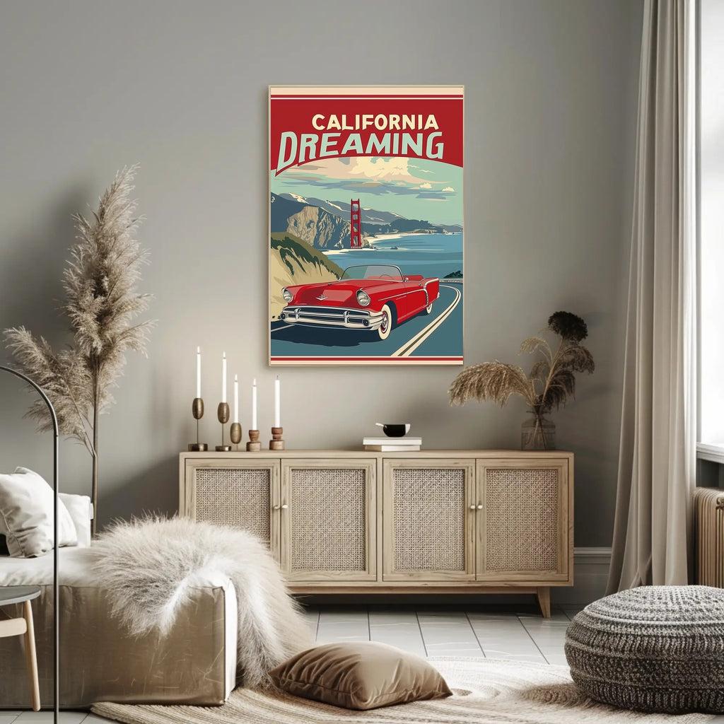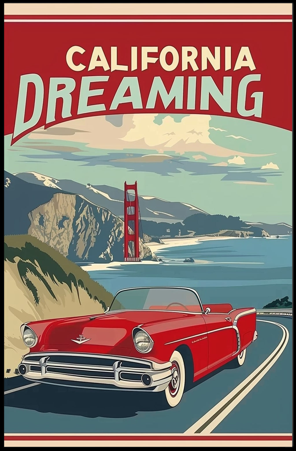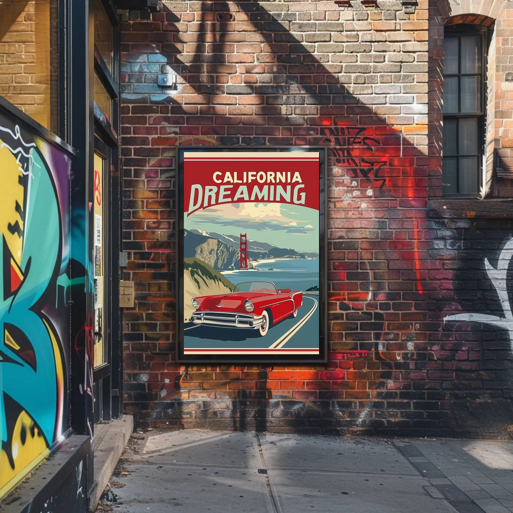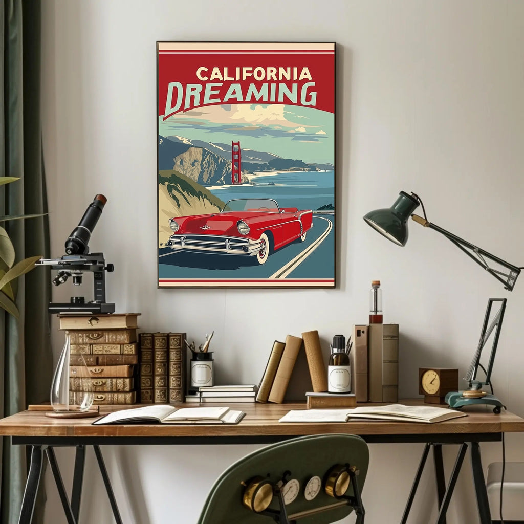 Ready to transform your wall? Add the California Dreaming Red Convertible Travel Poster to your cart now and bring classic California style home with PosterGoat.