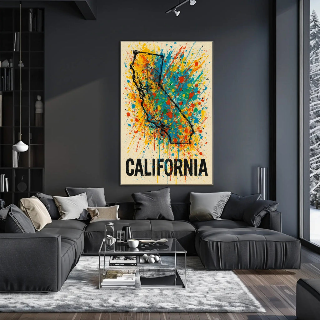 This California Splash Art Poster is perfect for living rooms, bedrooms, studios, or offices—any space that could use a touch of sun-drenched inspiration and coastal charm.