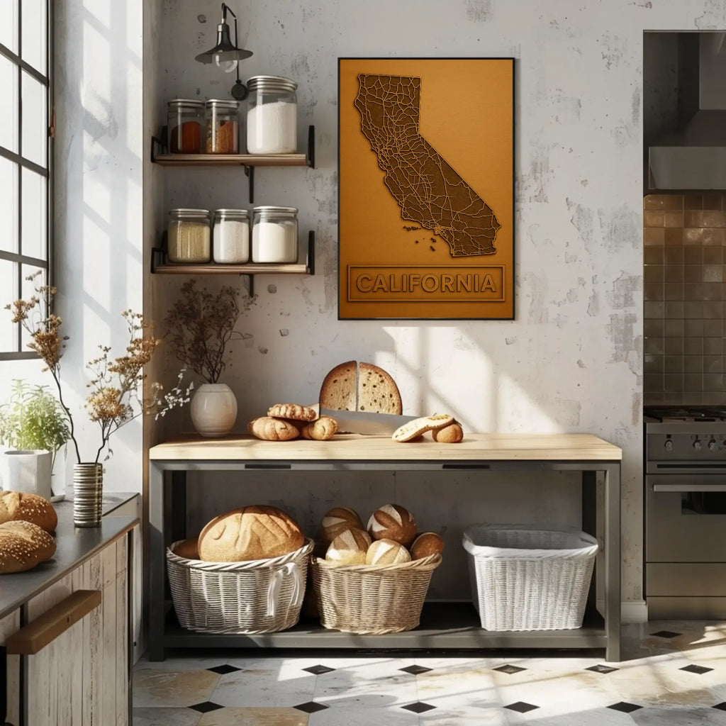 This poster is an excellent choice for living rooms, offices, entryways, or gallery walls where texture and warm tones elevate the atmosphere. It also makes a meaningful gift for Californians, travelers, and anyone who loves geography-inspired art.