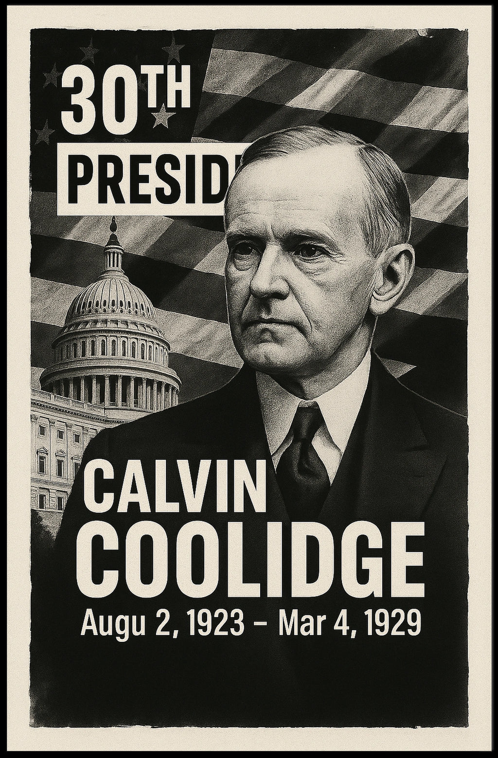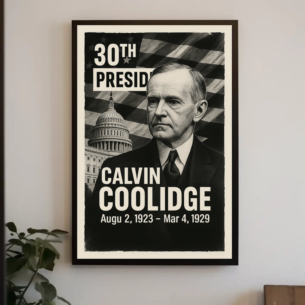 Celebrate the beauty of Calvin Coolidge 30th President of the United States Digital Montaje Poster with this timeless wall art. Designed to capture its unique appeal, this piece is perfect for collectors, enthusiasts, or anyone who wants to bring meaning and inspiration into their space. This Calvin Coolidge poster blends a formal presidential portrait with a vintage montage to celebrate American history and the spirit of the USA.