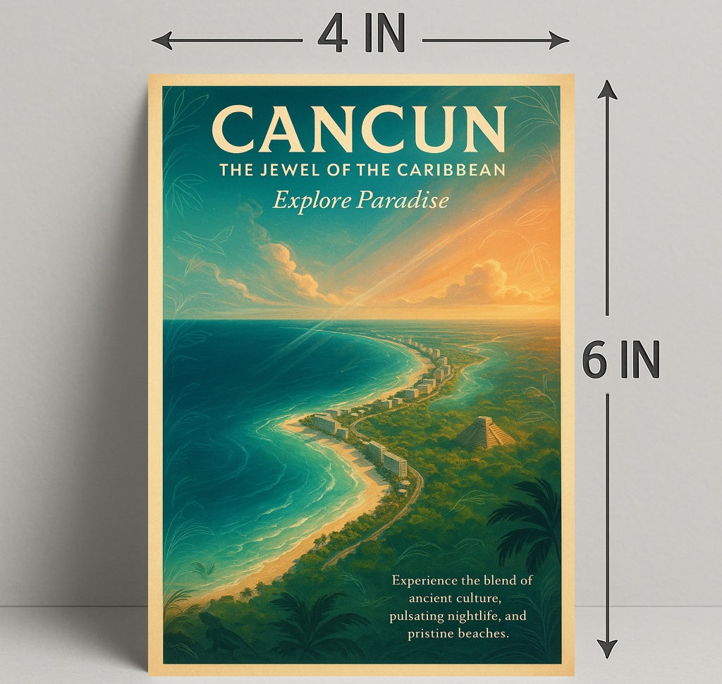 Whether you're a travel lover, souvenir collector, or interior enthusiast, this Cancun poster transforms a plain wall into an invitation to explore paradise. Add this evocative Caribbean wall art to your collection today and let PosterGoat help you tell your travel story.