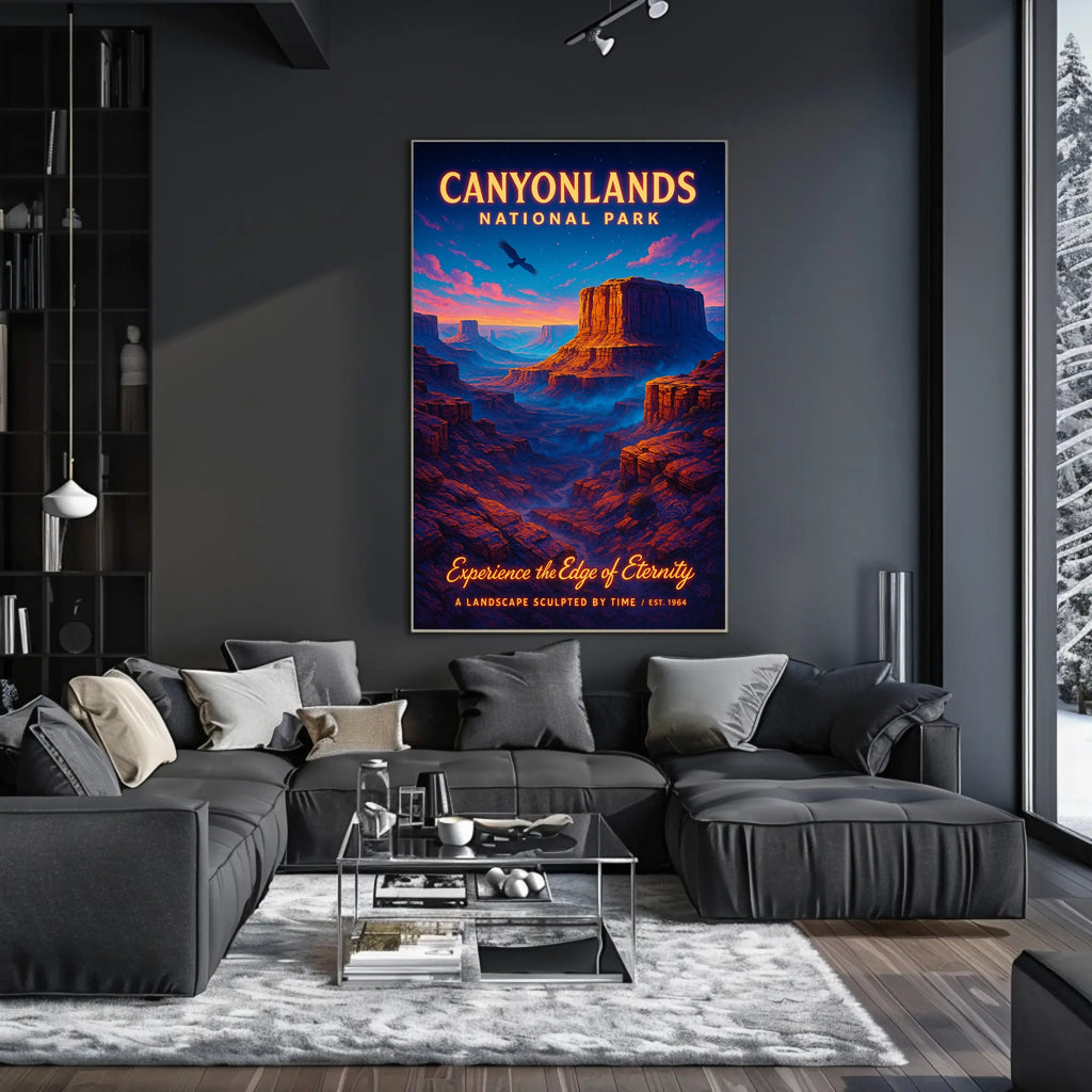 This poster captures the essence of Canyonlands National Park. Designed for decor lovers and wanderlust spirits, this art print adds charm to any room with visuals inspired by real-world scenery.