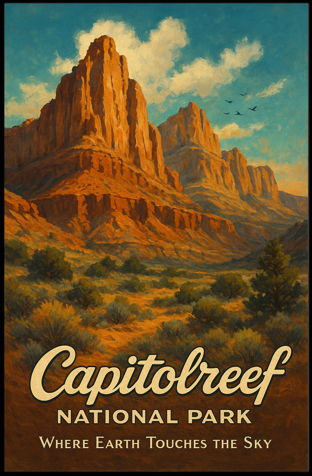This poster captures the essence of Capitol Reef National Park. Designed for decor lovers and wanderlust spirits, this art print adds charm to any room with visuals inspired by real-world scenery.