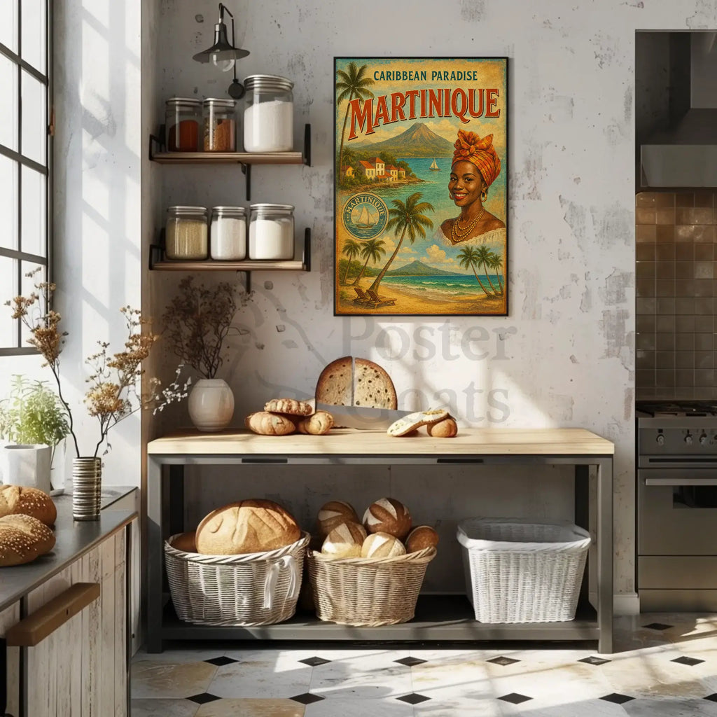 Add a timeless slice of Caribbean paradise to your home with this Martinique vintage travel poster from PosterGoat — order now to bring island warmth and cultural charm to your walls.