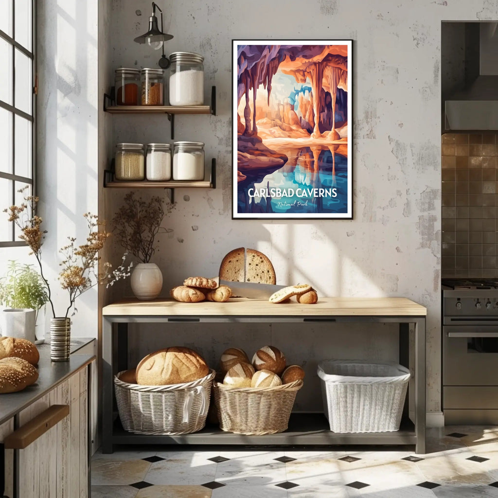 Printed with rich, fade-resistant inks to preserve vibrant blues, oranges, and purples, this Carlsbad Caverns poster adds instant warmth and visual drama to any wall. Hang it framed or unframed for a polished travel-decor statement.