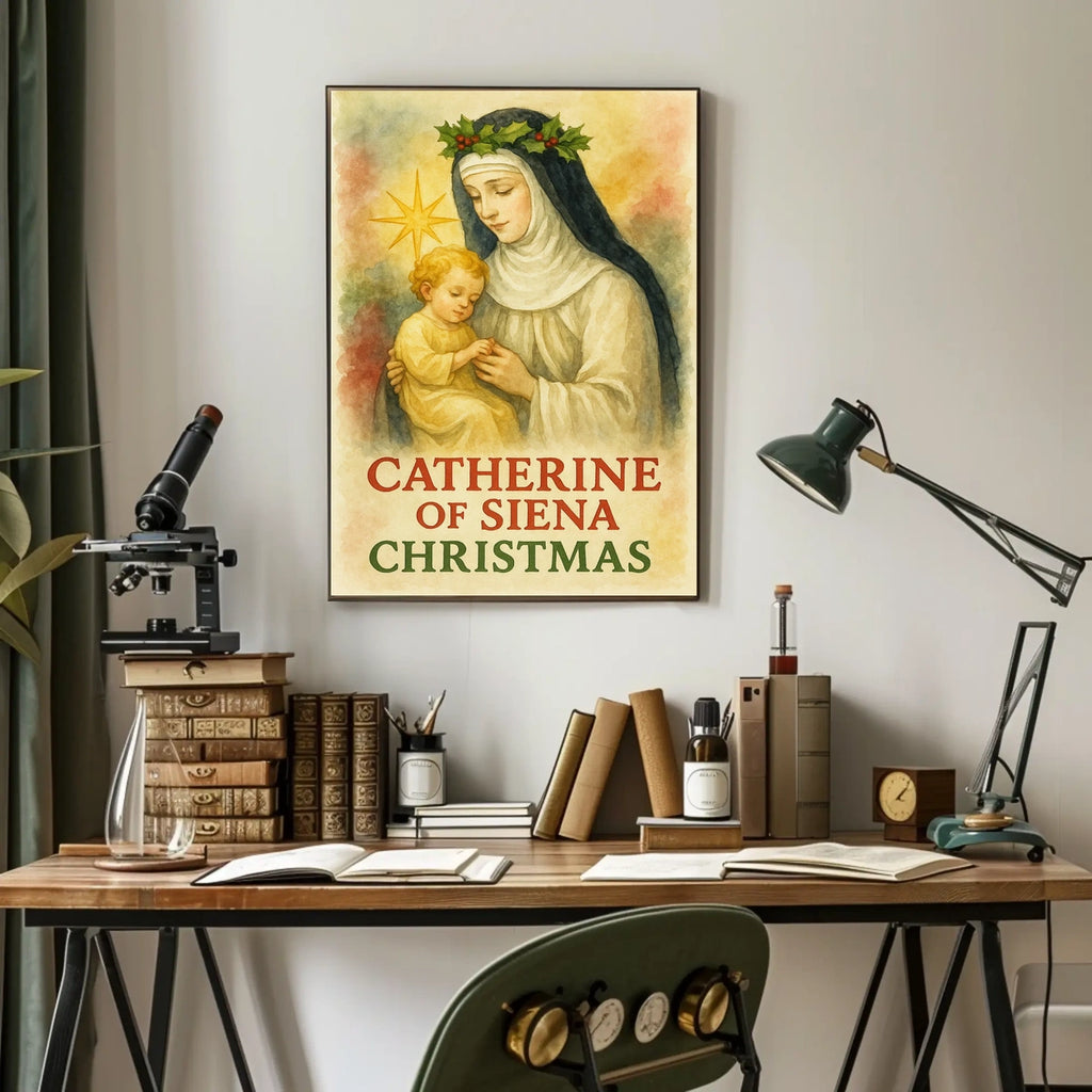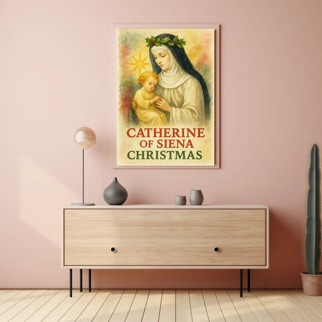 Celebrate the spirit of Christmas with the Catherine of Siena Religious Heritage Artistic Poster, a vibrant artwork that captures the grace of a sacred figure reminiscent of Saint Catherine of Siena. The elegant portrayal embodies Madonna and Child symbolism, weaving deep tradition with tranquil charm that enriches any space.
