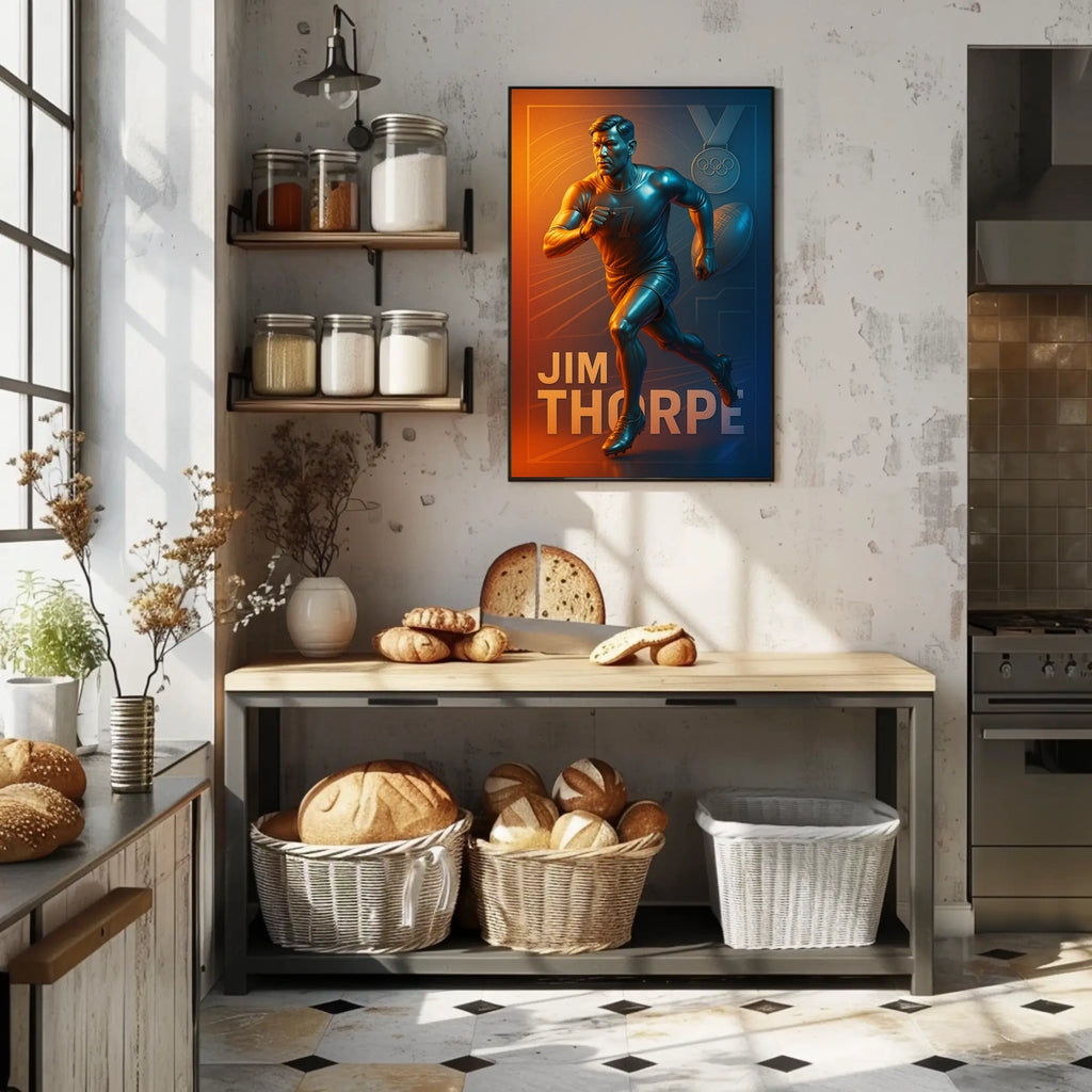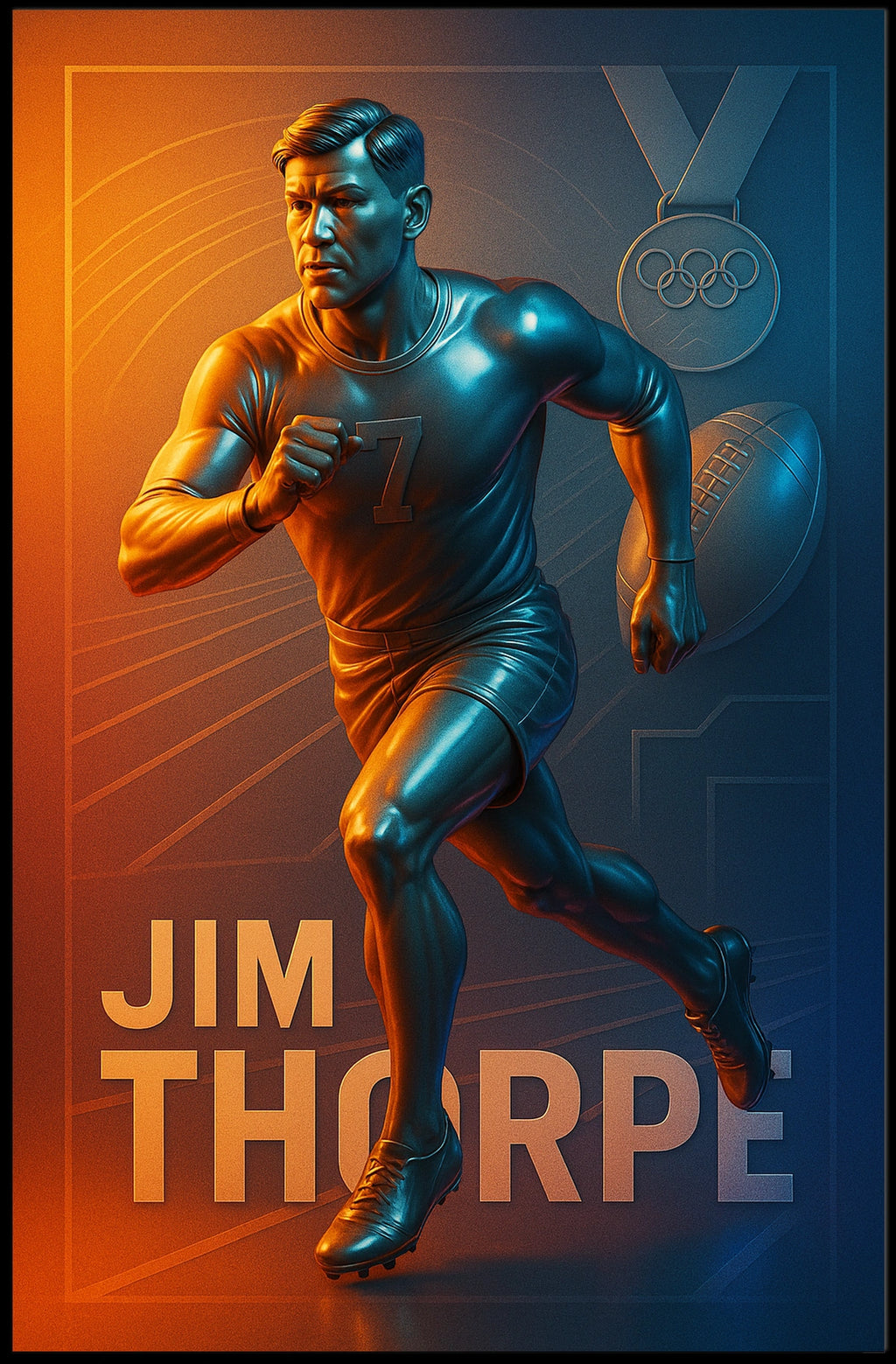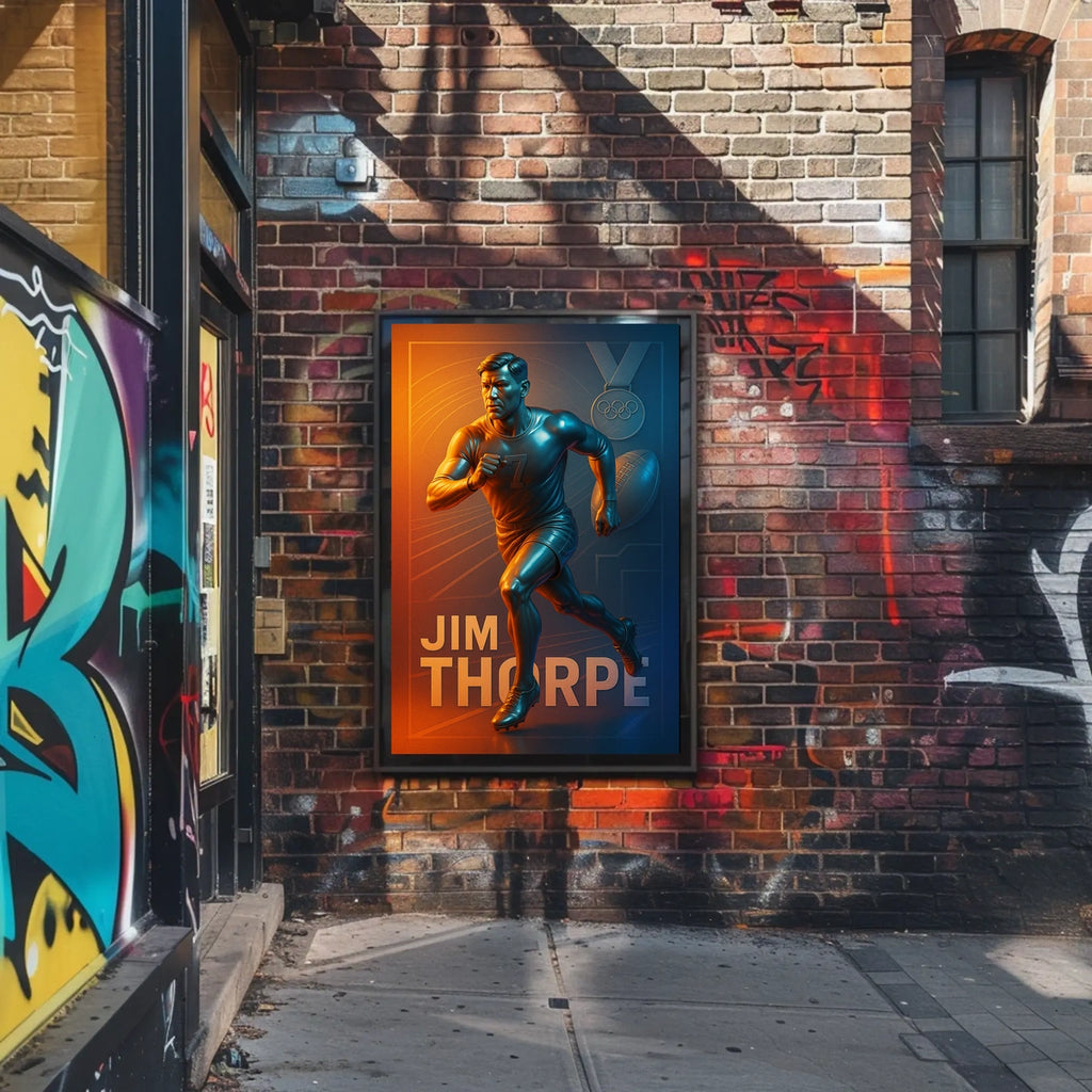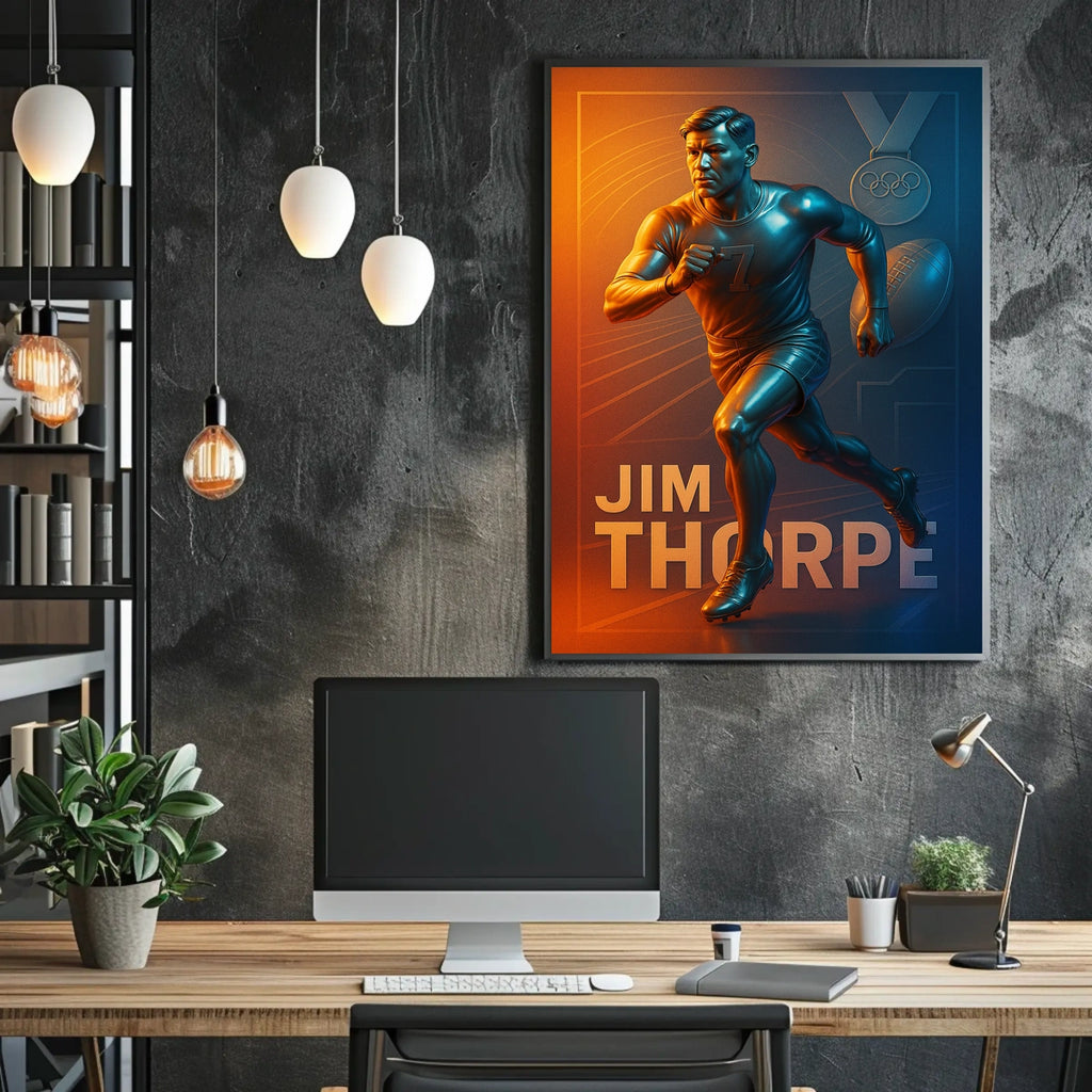 Immerse your space in the energy of elite athletics with this Celebrating Athletic Excellence Poster. This vibrant artwork captures an iconic athlete pushing limits in track and field and football, using bold blue and orange hues to symbolize determination, strength, and victory. A striking centerpiece for any sports room.