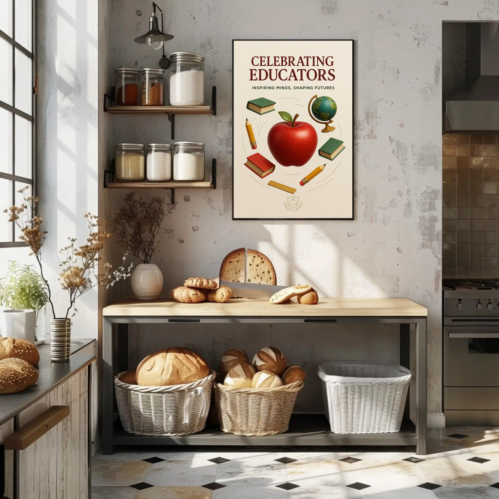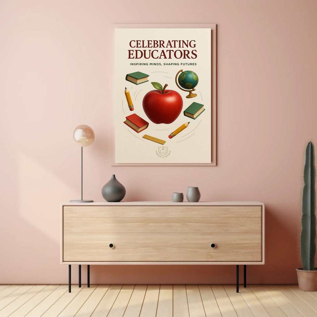 - Inspiring message: Large, elegant typography reads “Celebrating Educators” with the hopeful tagline “Inspiring minds, shaping futures”, making it a meaningful piece for teacher appreciation and school décor.
