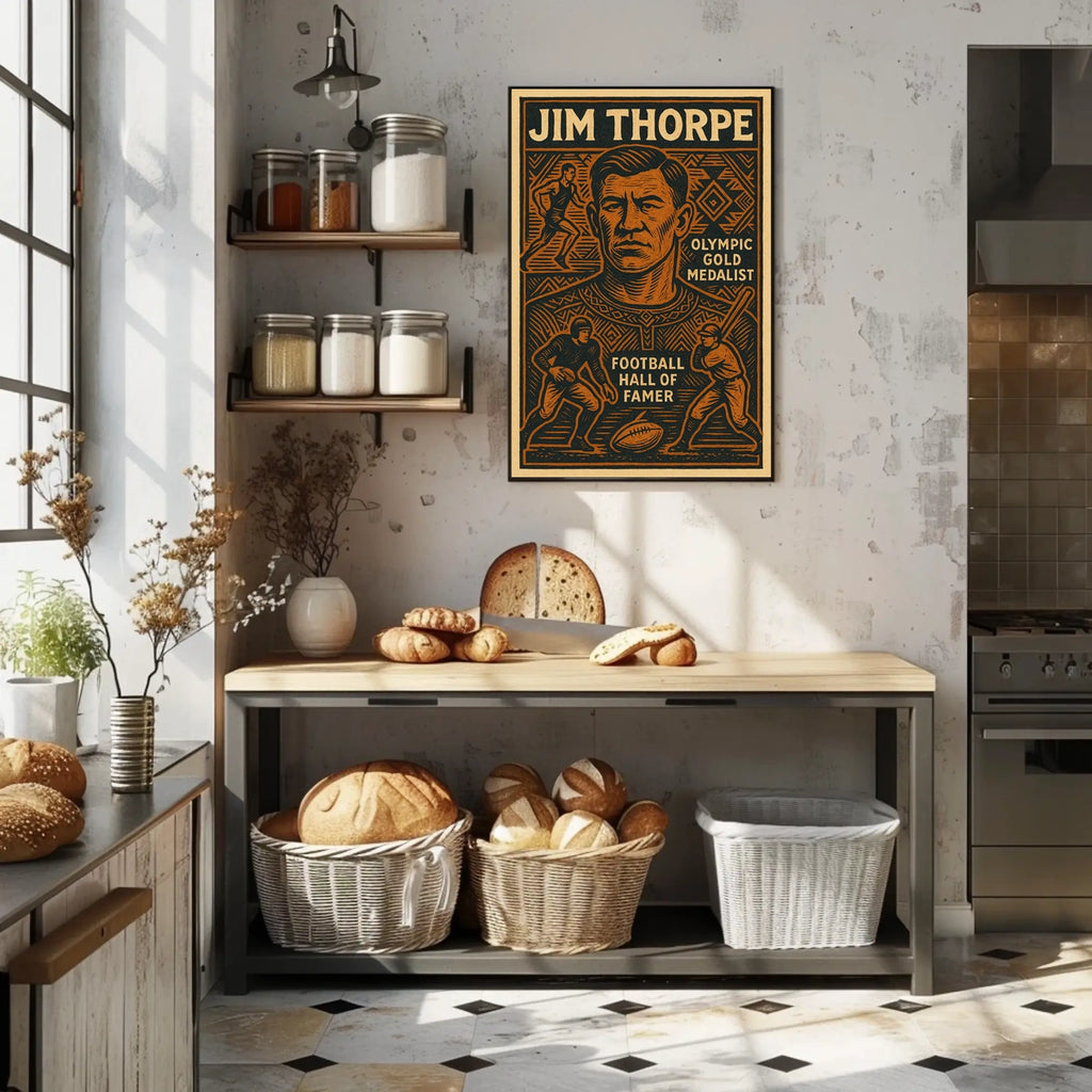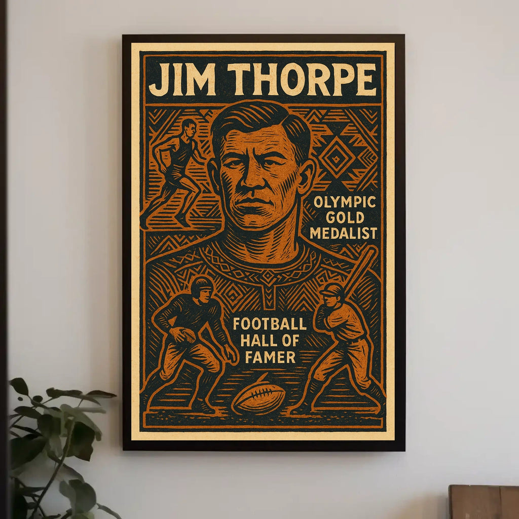 Bring this Celebrating Jim Thorpe Poster into your space and honor a sports legend whose legacy spans athletic achievements and history. Shop now to own a piece of inspiration.