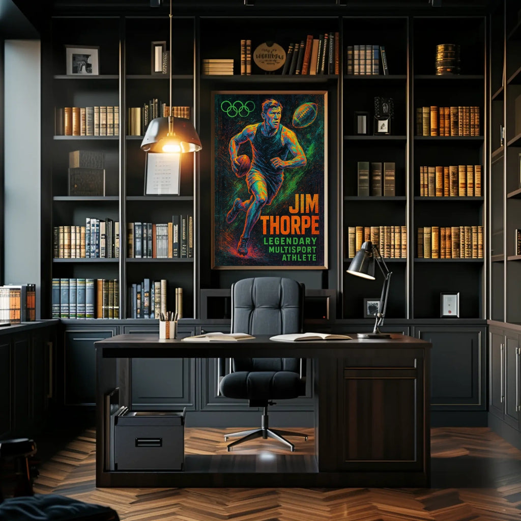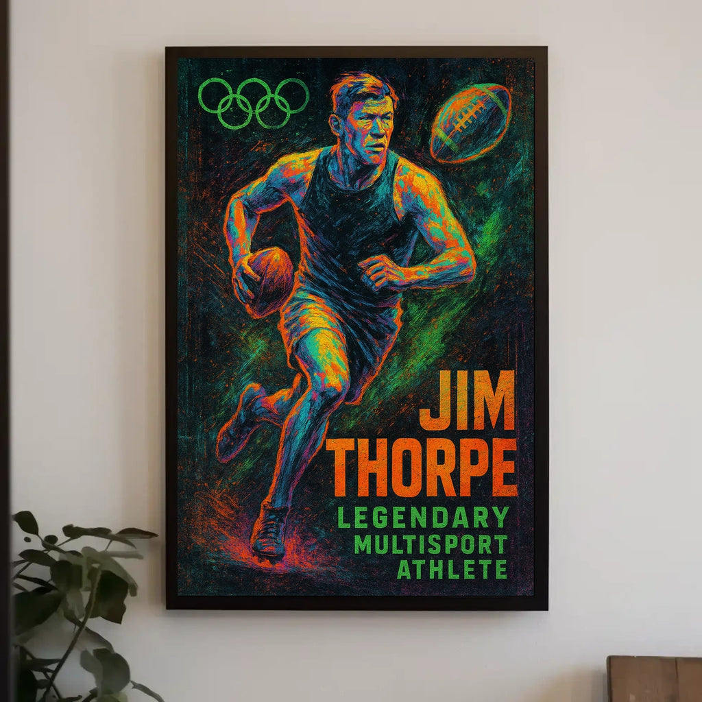 Celebrate the dynamic energy and enduring legacy of a legendary multisport athlete with this vibrant Jim Thorpe poster. It spotlights Olympic achievements and the spirit of versatility, turning any space into a source of inspiration for sports fans and ambitious achievers alike.