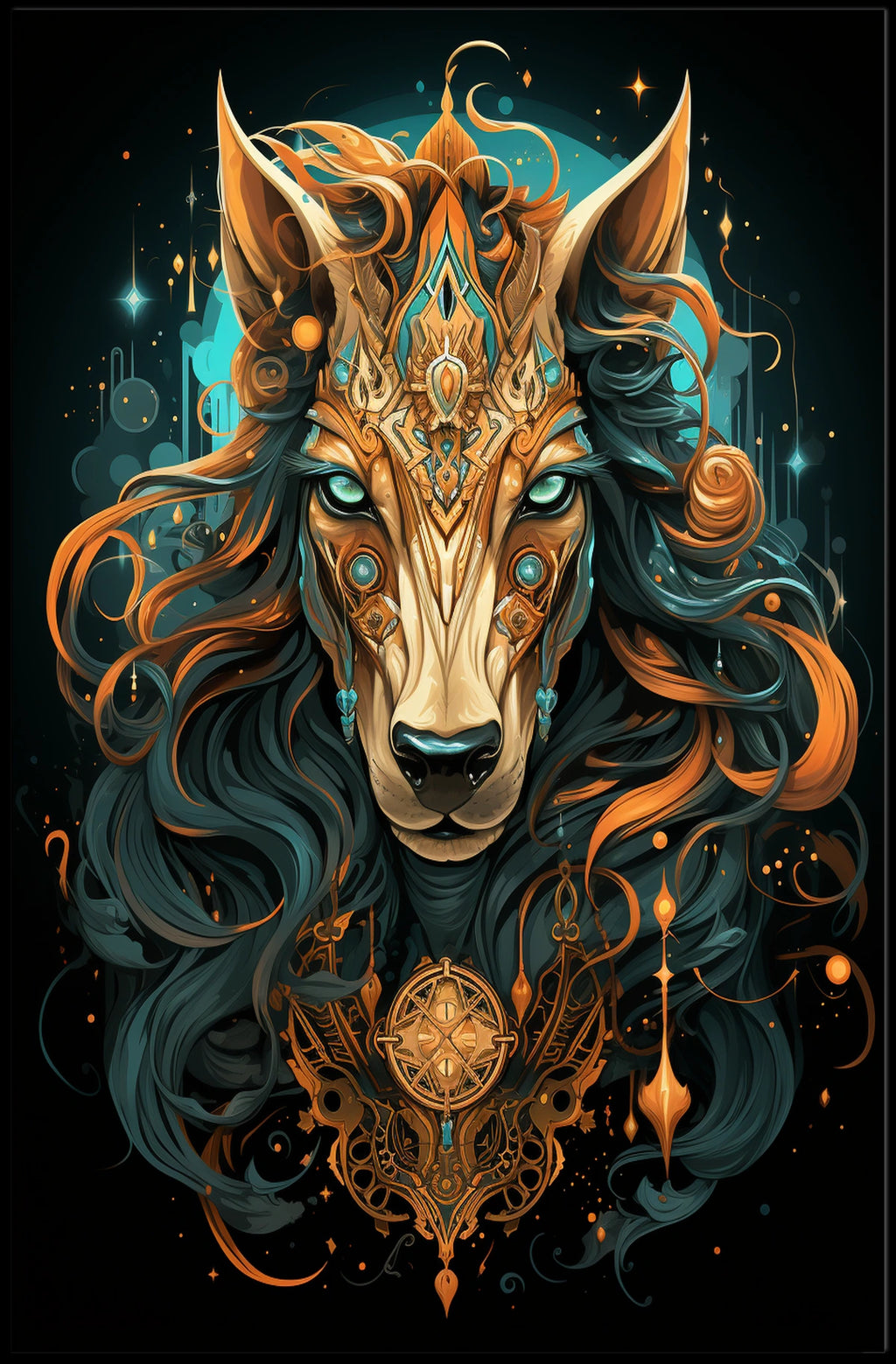 Discover Celestial Guardian, a striking artwork that blends regal wolf imagery with ornate golden armor and celestial motifs. This captivating piece invites a sense of wisdom, strength, and wonder, making it a standout addition to any collection and a focal point for inspired living spaces.