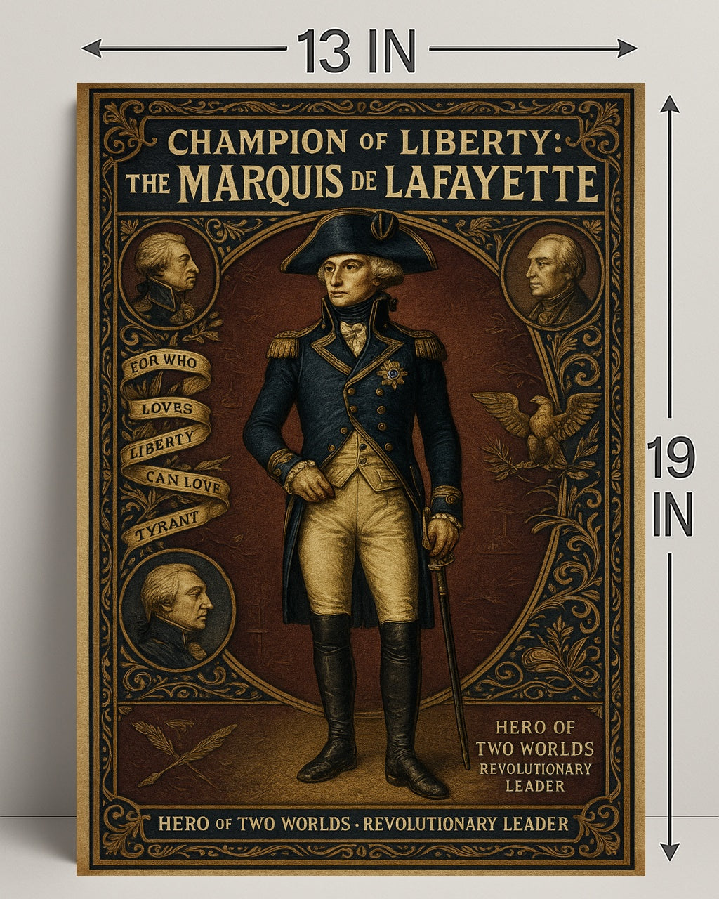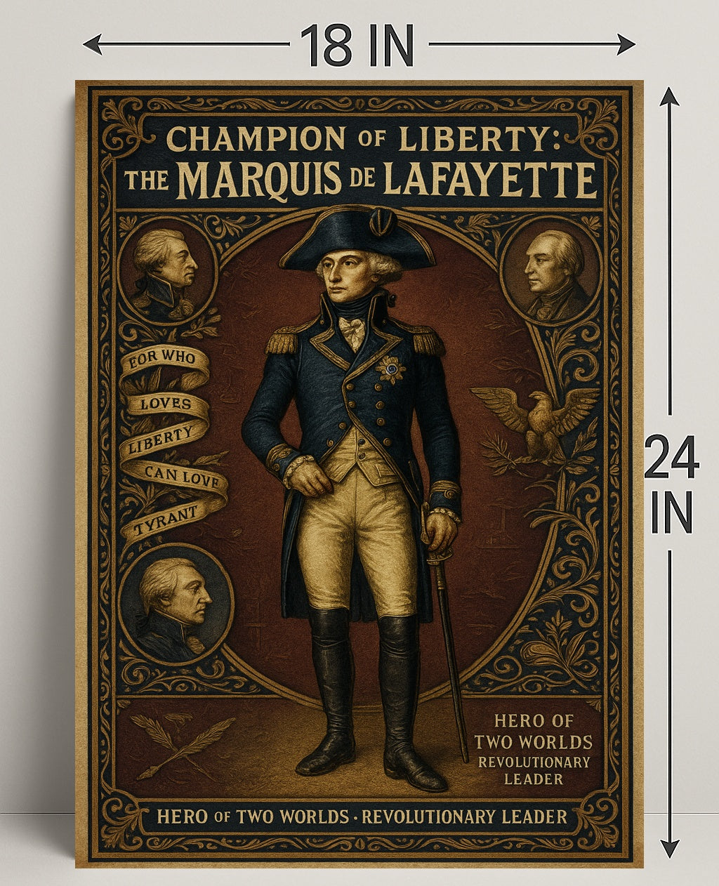 Incorporate the Champion of Liberty: The Marquis de Lafayette Poster into your home today and enjoy the blend of art and history. Perfect as a gift or a personal treasure, this piece is sure to elevate any space. Don't miss out—add it to your collection now!