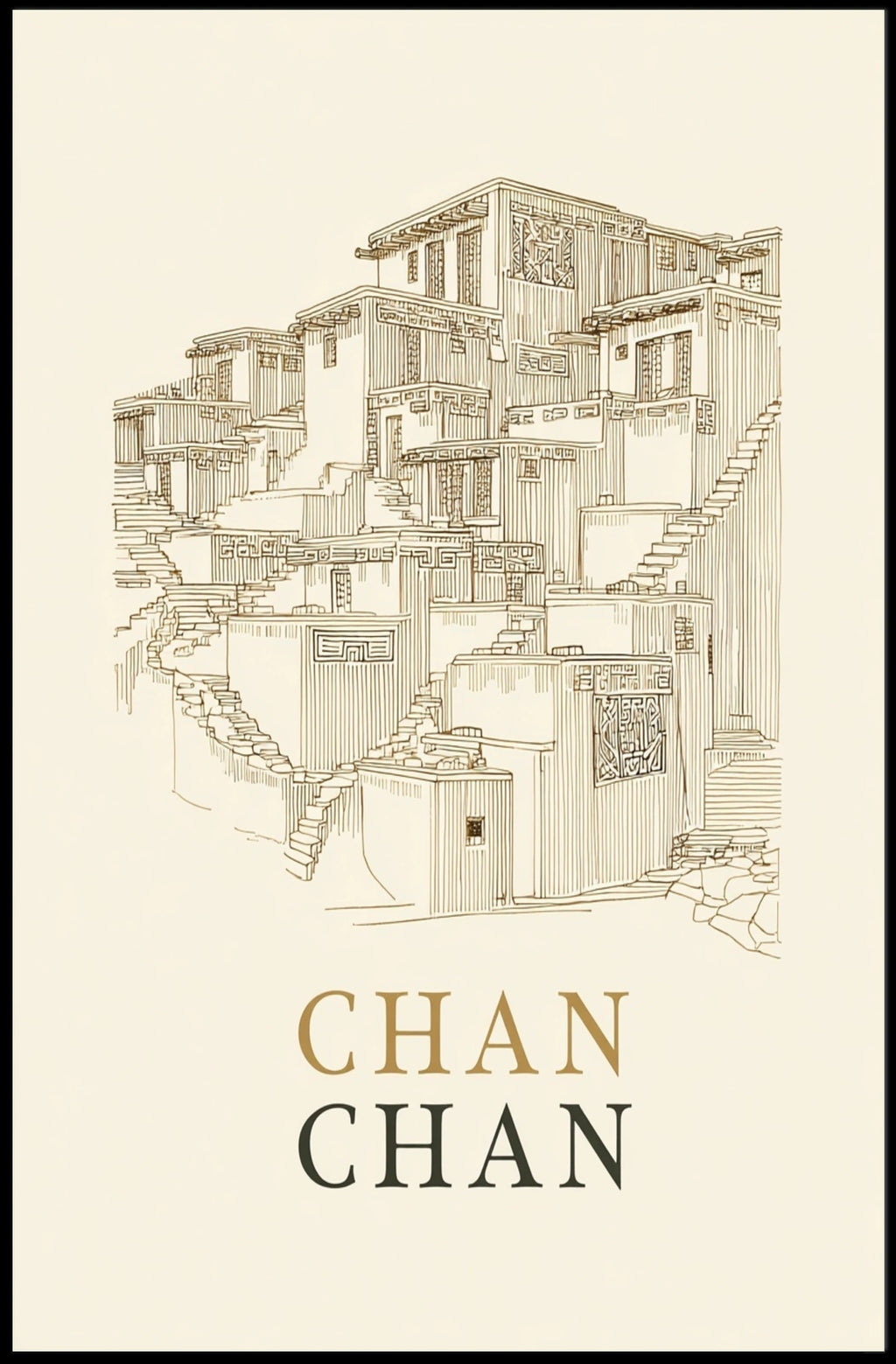 Immerse your walls in the timeless charm of Chan Chan with this architectural illustration poster. Designed for decor lovers and wanderlusters, it blends historical motifs with modern print quality to create a conversation-starting piece that elevates any room.
