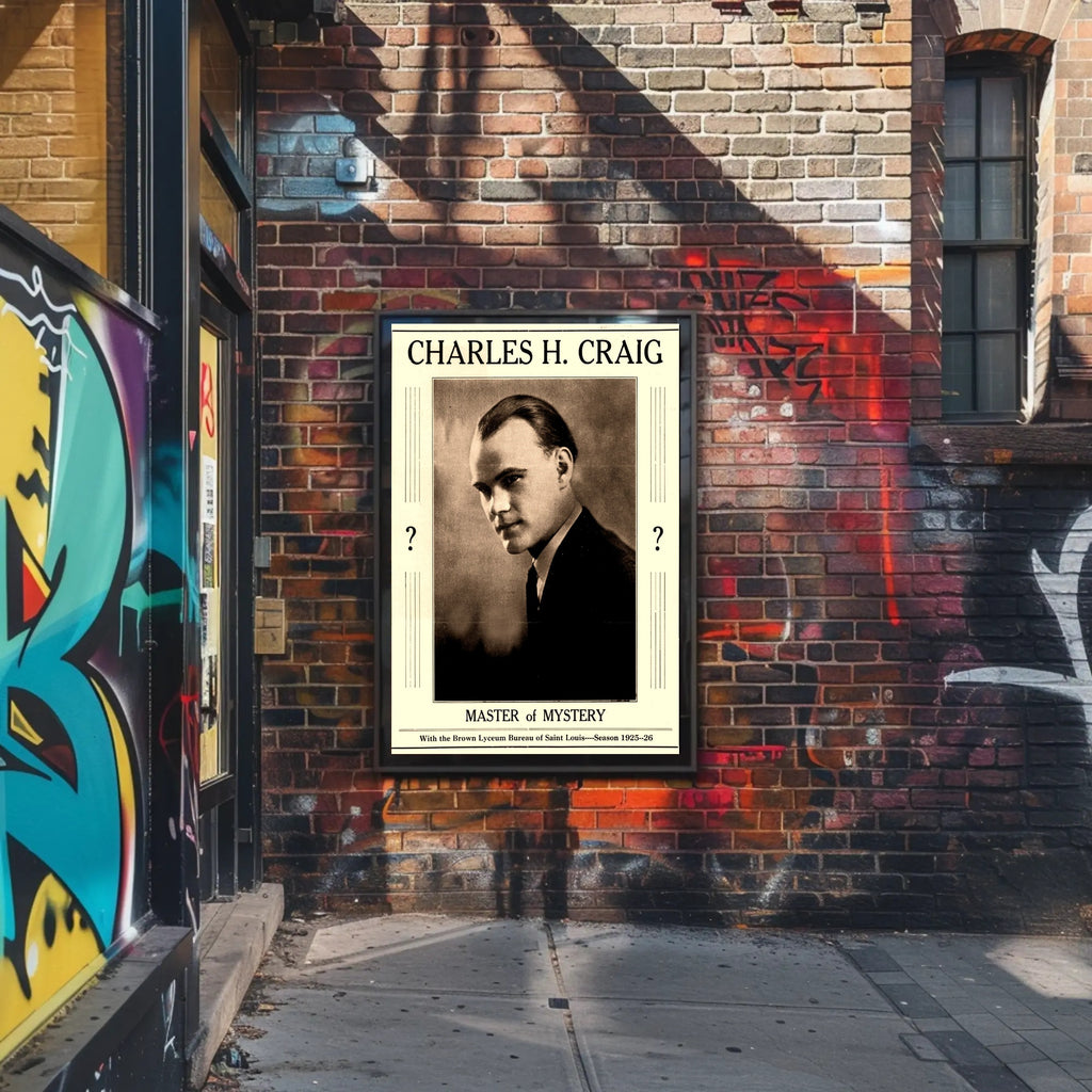 Charles H. Craig: Master of Mystery Cultural Poster from PosterGoat — a striking, vintage-style art print that captures the enigmatic allure of early 20th-century mystery culture. This high-quality poster features a sepia-toned portrait framed by art-deco lines and curious question-mark accents, evoking classic intrigue and cinematic nostalgia. Perfect for collectors, mystery art fans, and home decorators seeking a conversation-starting piece.