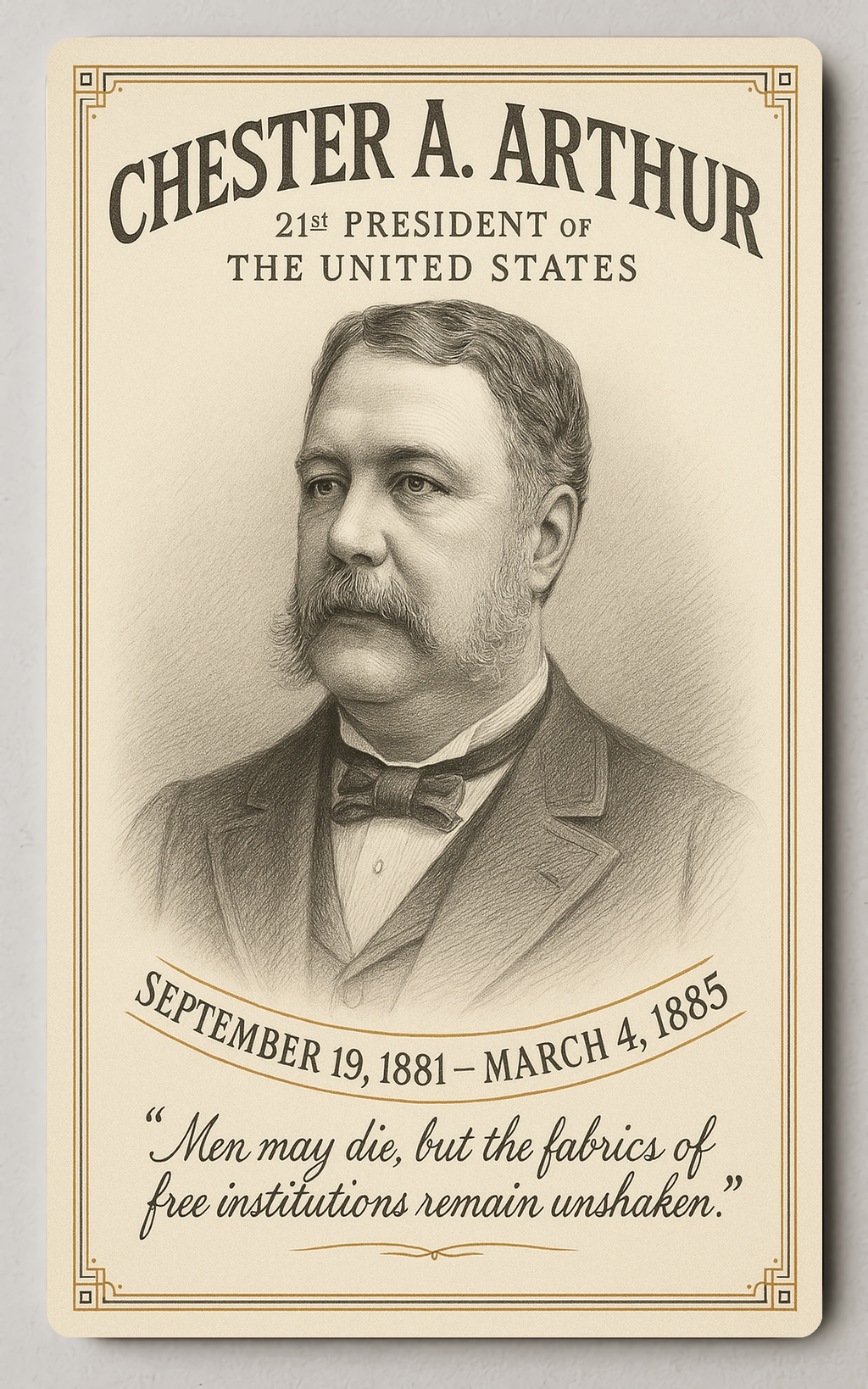 PosterGoat brings thoughtful craftsmanship to every print — add the Chester A. Arthur 21st President - Trading Card to your collection today and celebrate a unique slice of American history. Order now to elevate your display with a refined, collectible conversation piece.