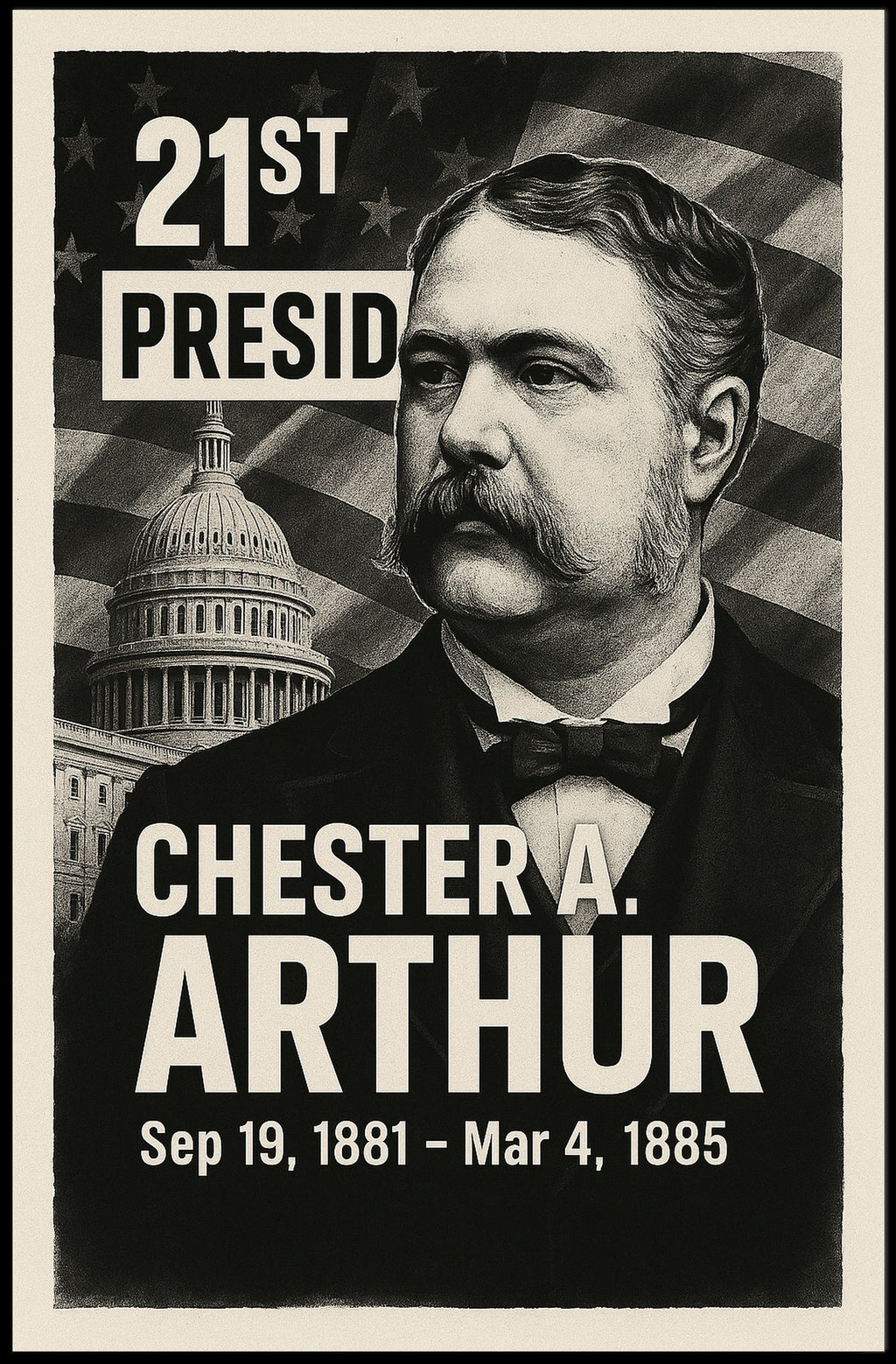 Printed with precision and made to inspire, this artwork is more than decoration—it’s a conversation piece that connects history, culture, and style. Bring Chester A. Arthur into your home, classroom, or office today and let your walls tell a powerful story. A sophisticated addition to any history or vintage poster collection, this piece celebrates American history and the legacy of its presidents.