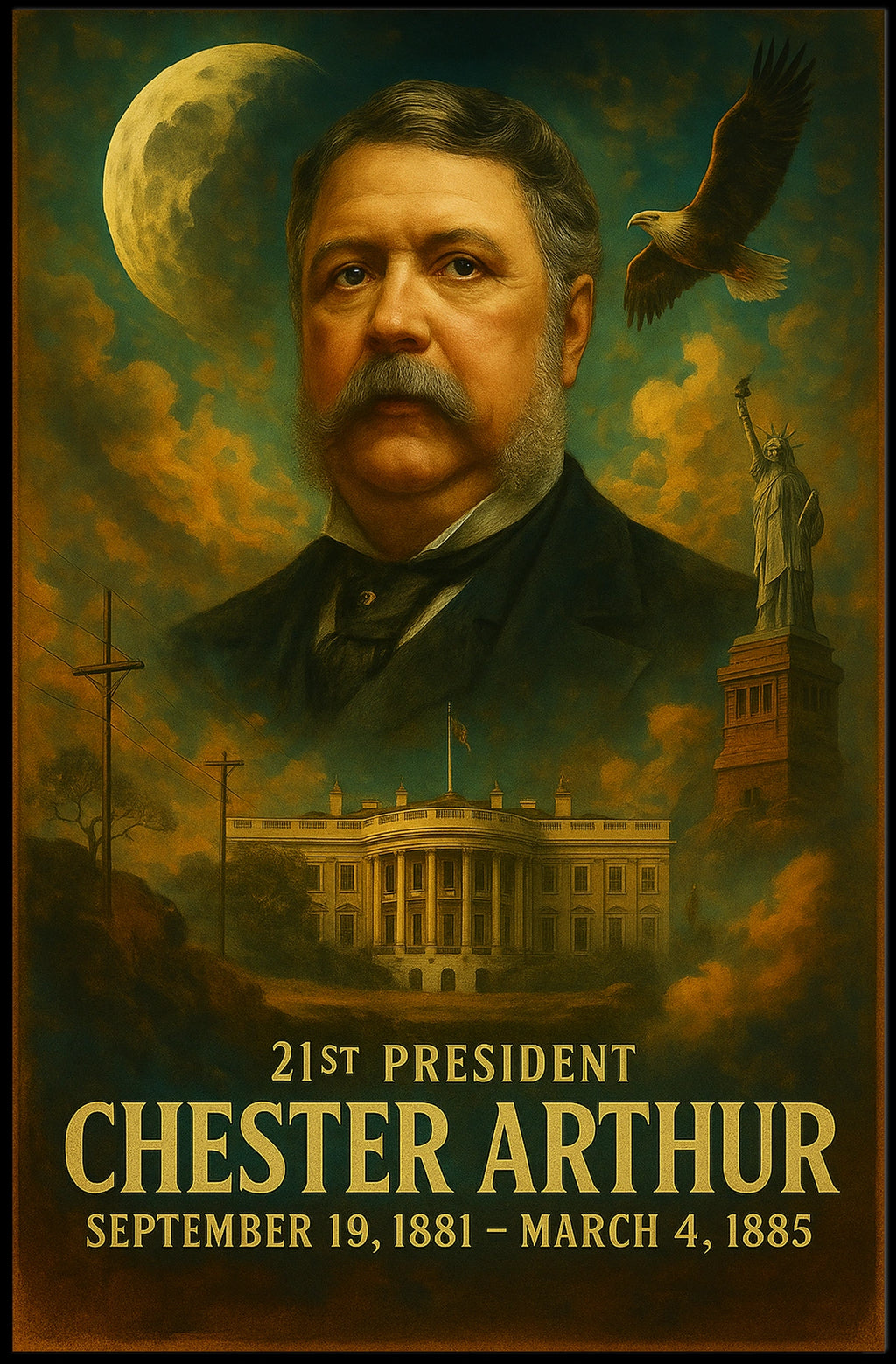 Chester Arthur 21st President Poster captures the essence of Chester Arthur, the 21st President. Designed for decor lovers and wanderlust spirits, this art print adds charm to any room with visuals inspired by real-world scenery.