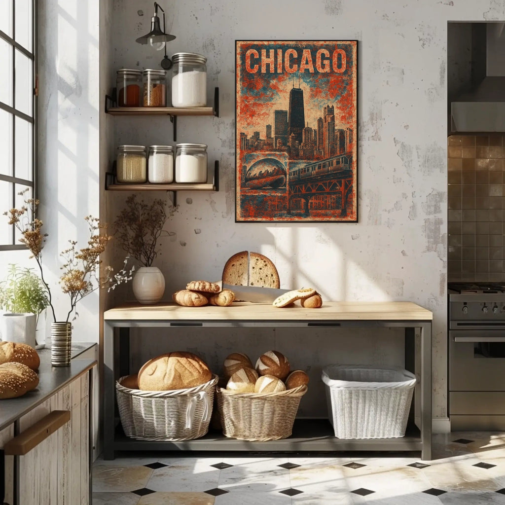 Chicago Cityscape Poster captures the essence of Chicago's skyline in a single, striking art print. Designed for decor lovers and wanderlust spirits, this wall art adds charm to any room with visuals inspired by real-world scenery.