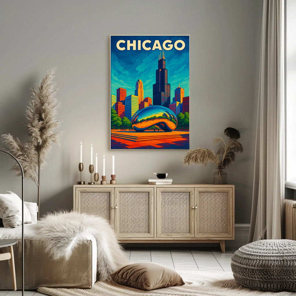 This poster captures the essence of Chicago Skyline and Cloud Gate. Designed for decor lovers and wanderlust spirits, this art print adds charm to any room with visuals inspired by real-world scenery.