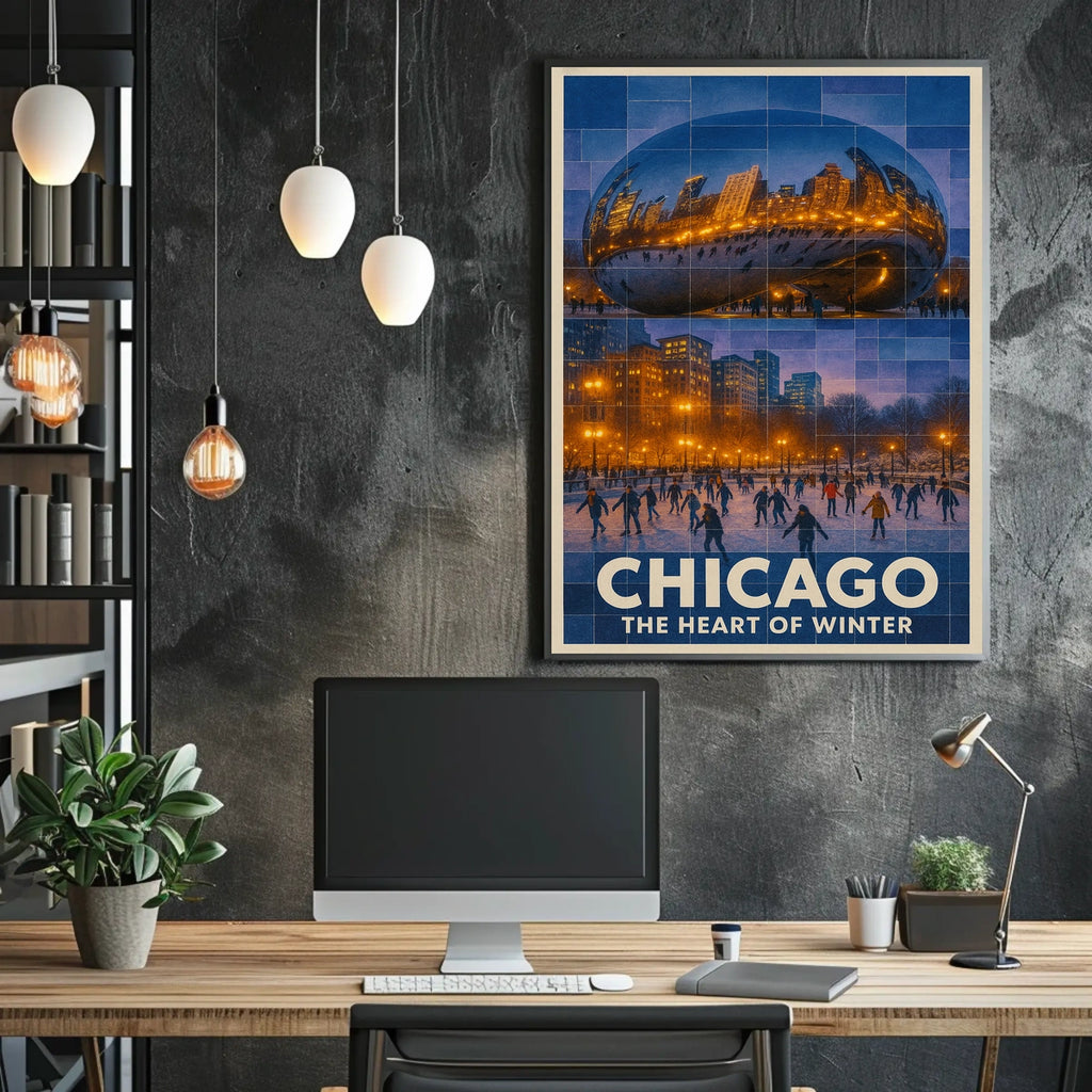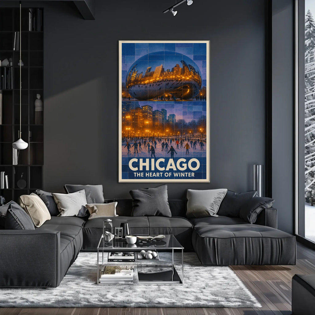 Celebrate the beauty of Chicago The Heart Of Winter Poster with this timeless wall art. Designed to capture its unique appeal, this piece is perfect for decor lovers and wanderlust spirits, or anyone who wants to bring meaning and inspiration into their space.