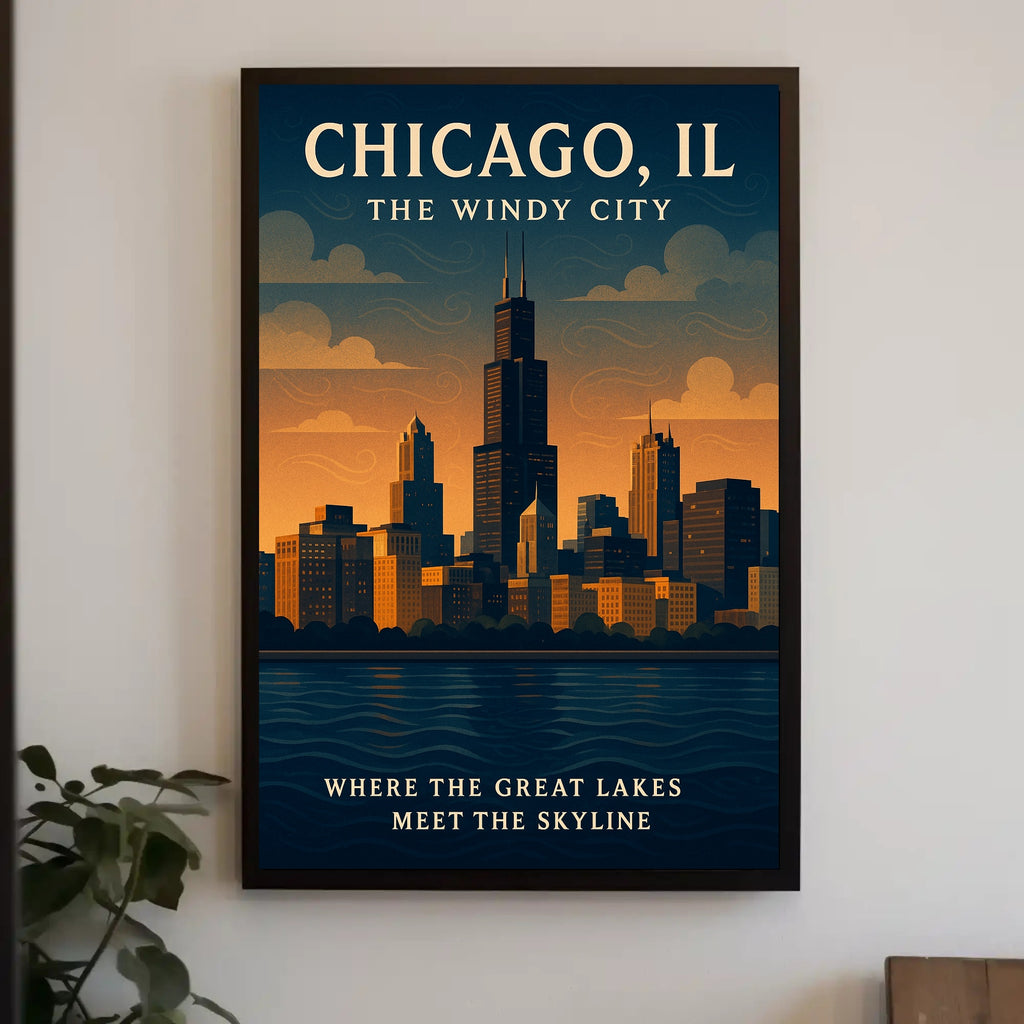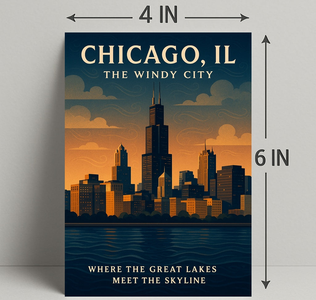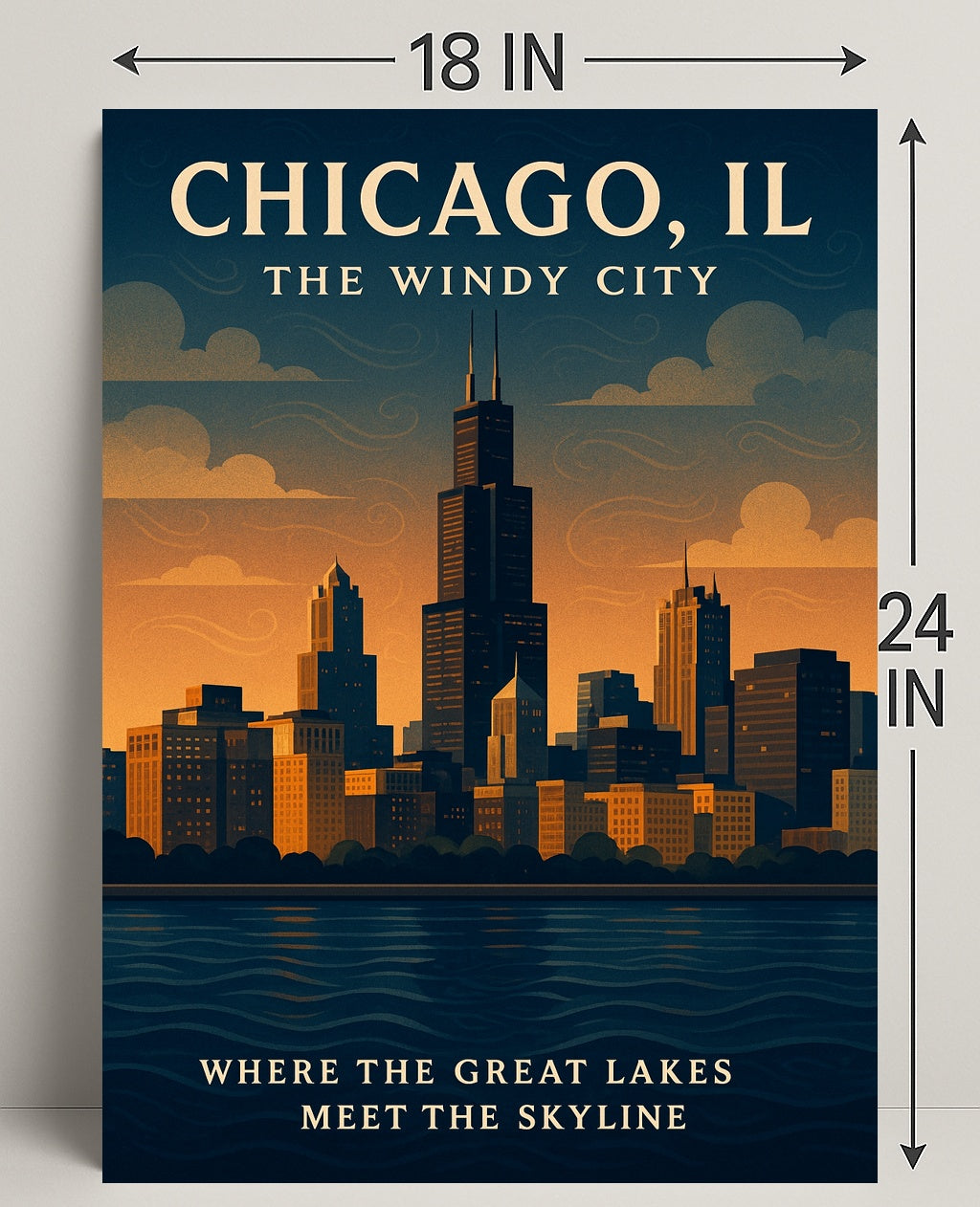 - Captivating Design: Inspired by real-world scenery, the poster features a beautifully illustrated skyline that brings the allure of Chicago indoors.