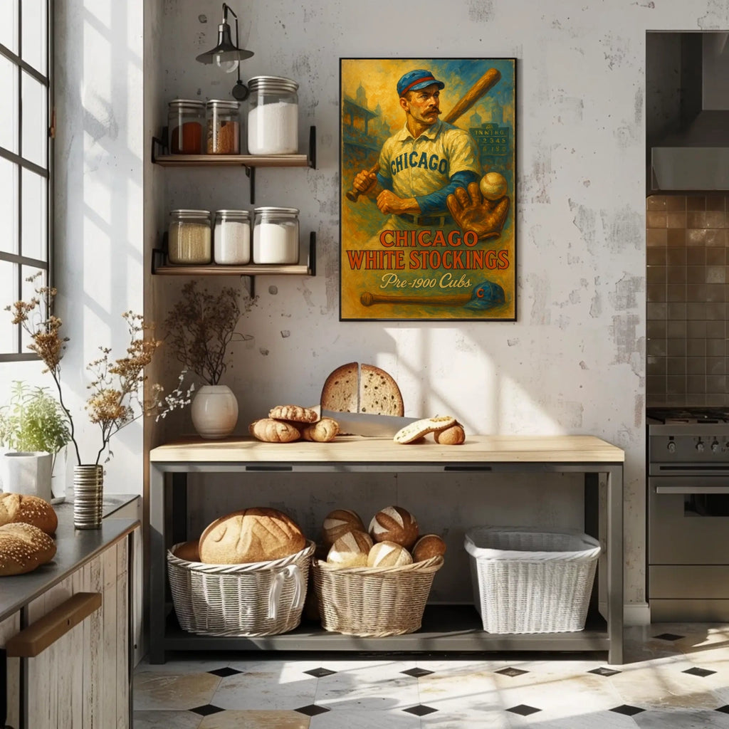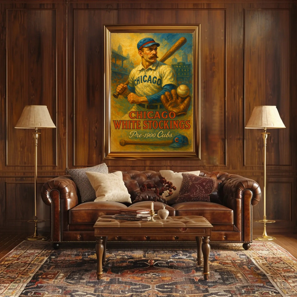 Step back to baseball's formative years with this vintage-style poster honoring the Chicago White Stockings, the 19th-century predecessors of the Chicago Cubs. The classic illustration captures a player in period attire, inviting fans to relive early baseball history and Chicago’s enduring sporting heritage. Ideal for living rooms, offices, or game rooms.
