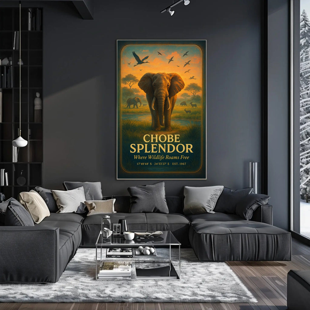 Capture the essence of Chobe Splendor with this artful poster, designed for decor lovers and wanderlust spirits. This print brings authentic scenery into your space, adding charm, texture, and a touch of adventure to any room.