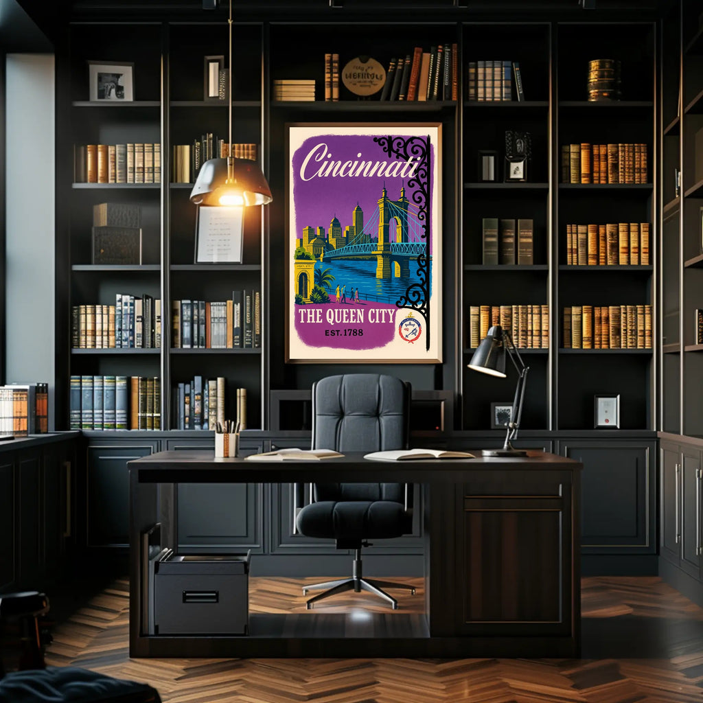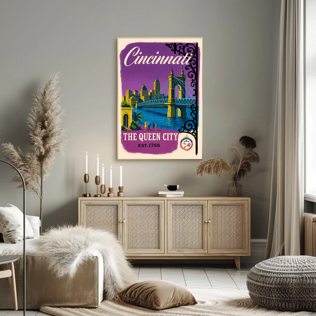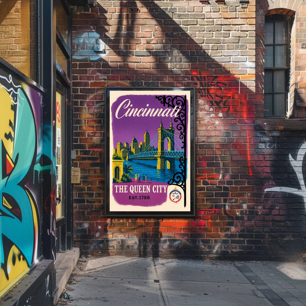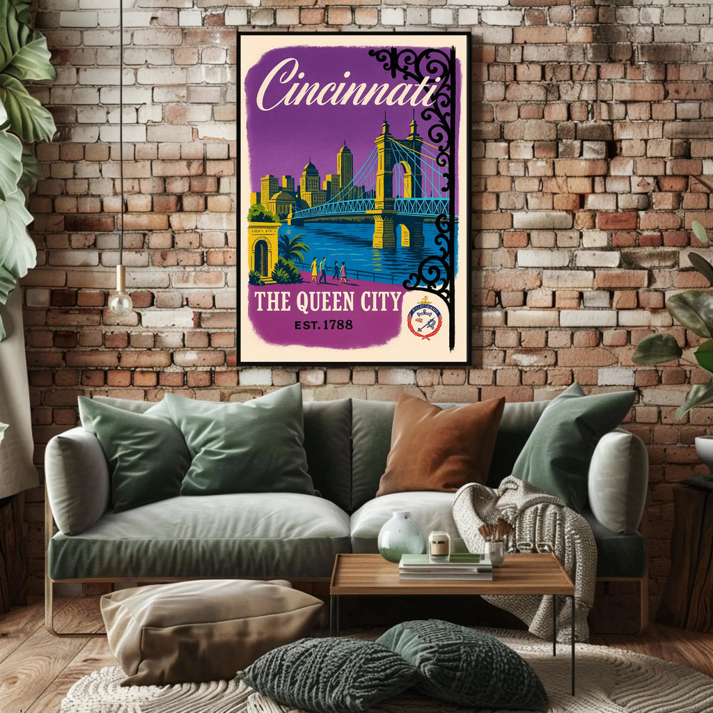 Add timeless urban style to your walls—order this Cincinnati Skyline Vintage Travel Poster from PosterGoat today and celebrate "The Queen City" in retro flair.