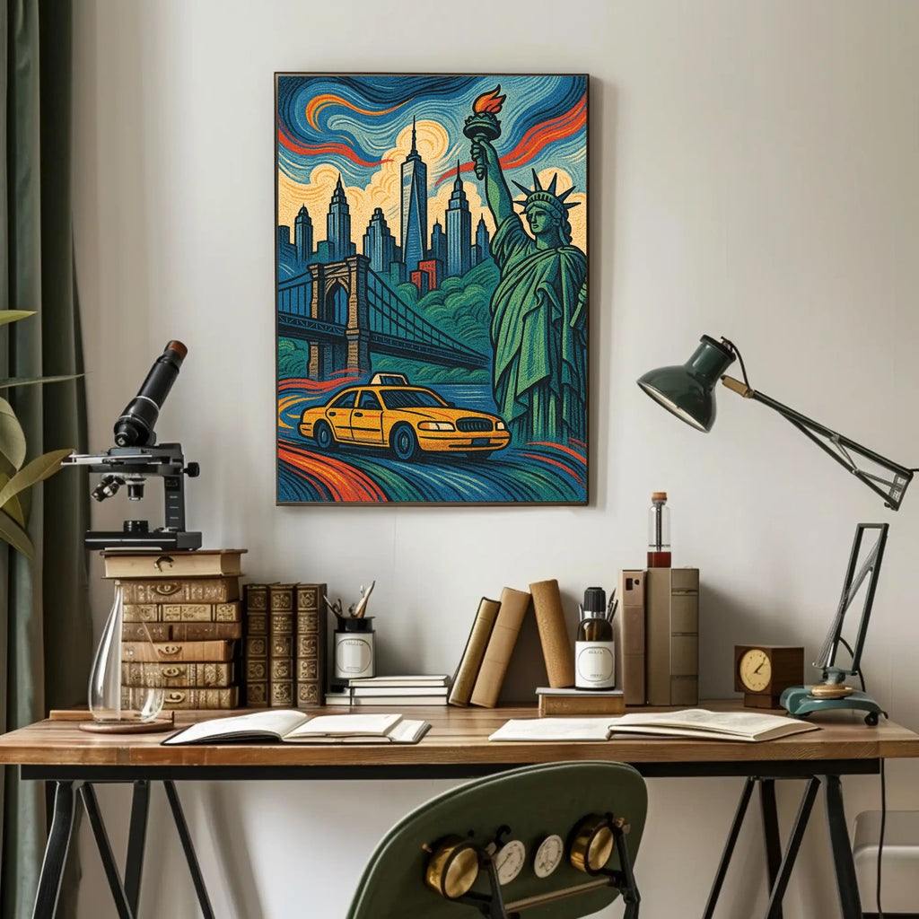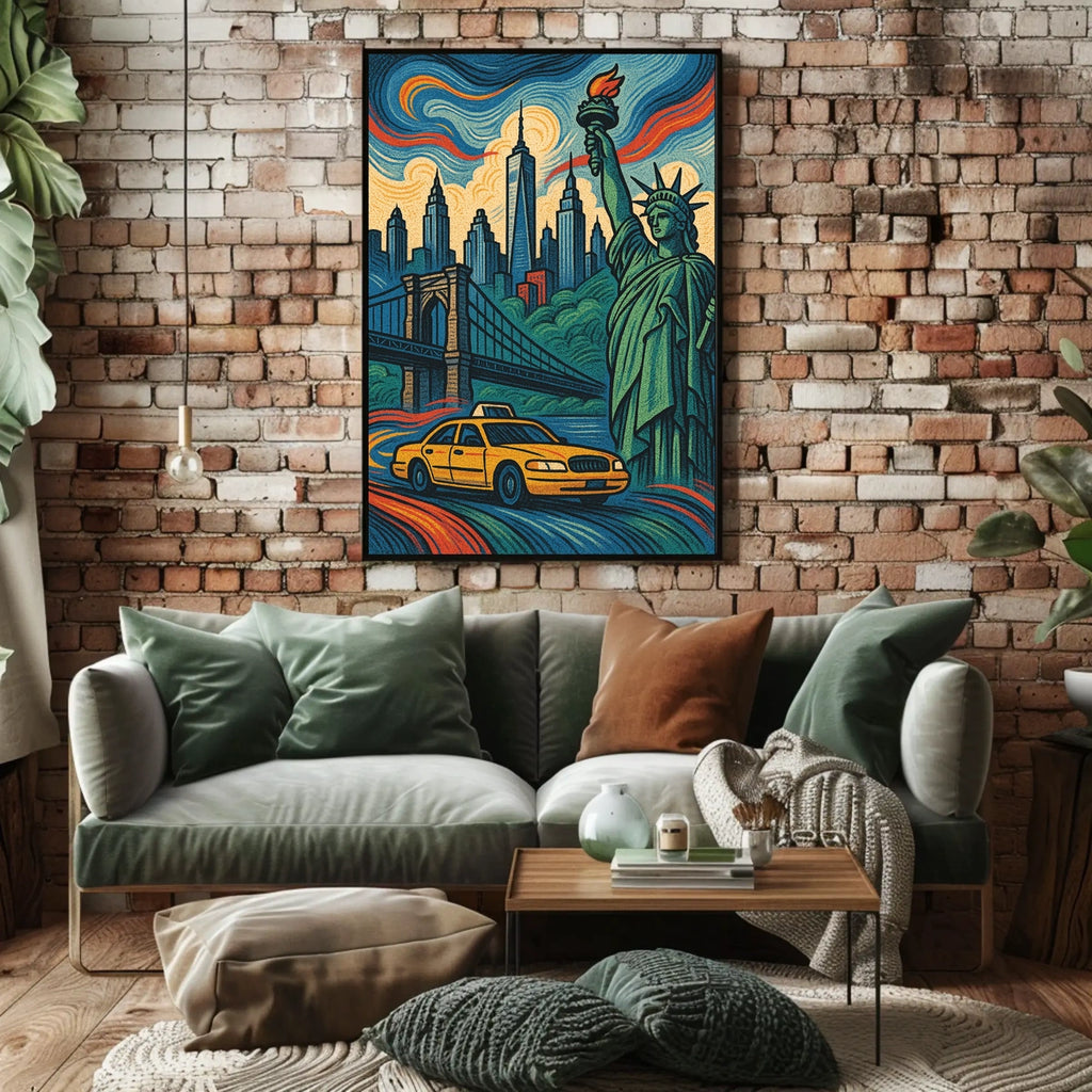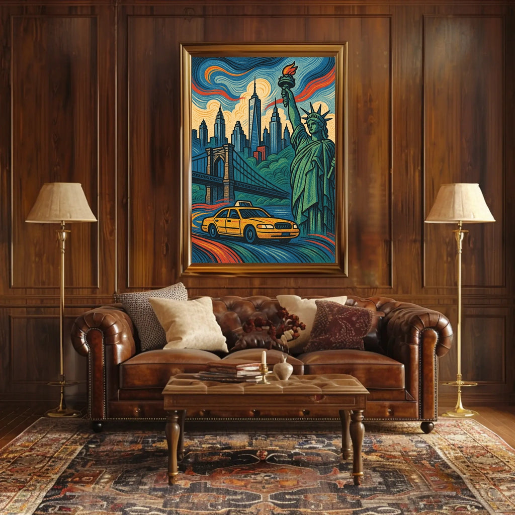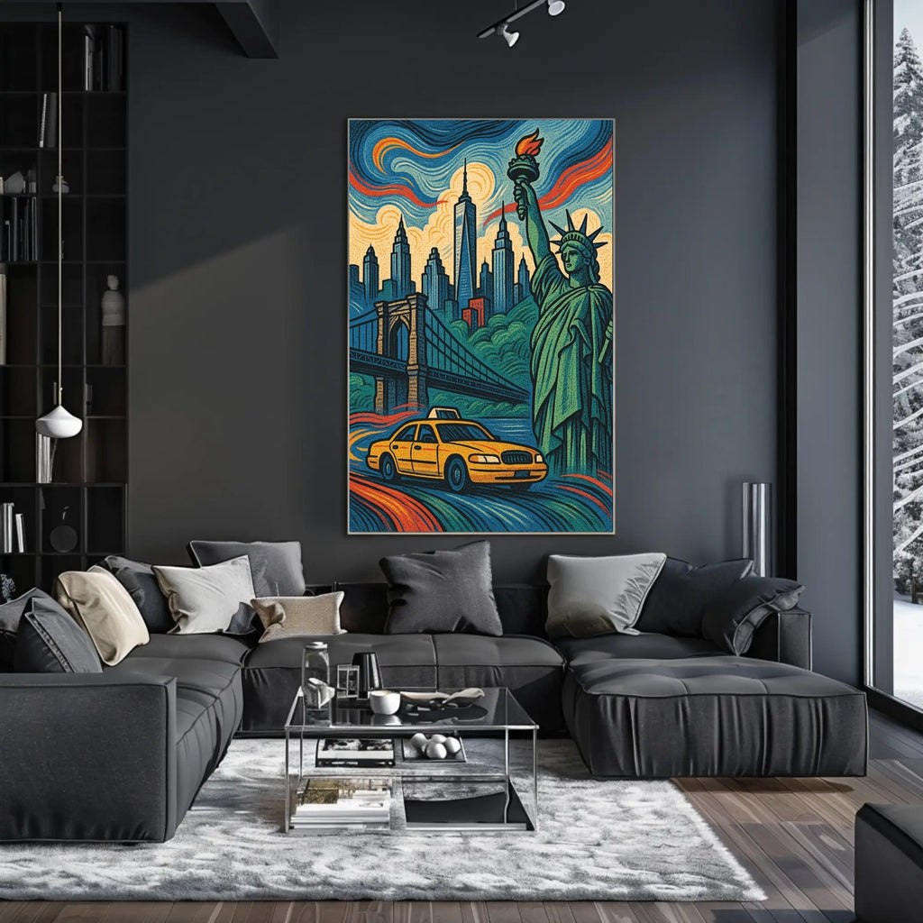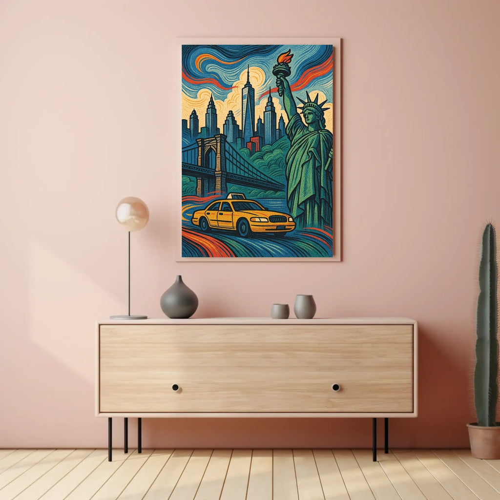 - Iconic landmarks in a single glance—Featuring the Statue of Liberty and Brooklyn Bridge, this design delivers instant cosmopolitan appeal and pride for any wall.