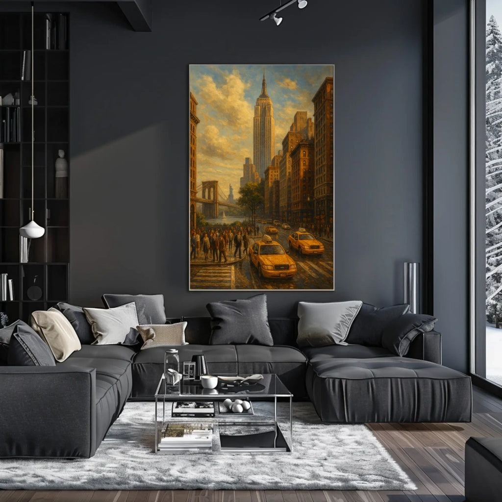 - Vibrant city energy: Bold skyline accents and bright yellow taxis convey urban vitality that enlivens any room.
