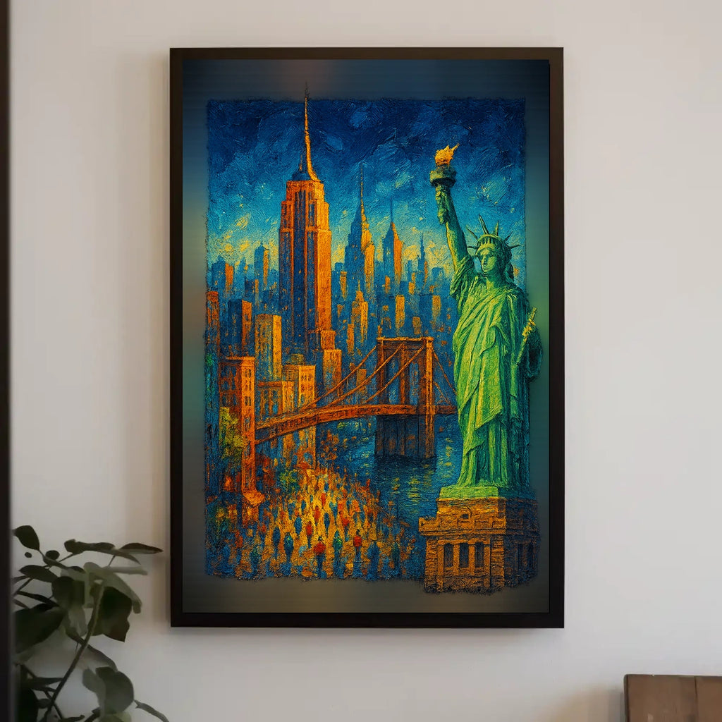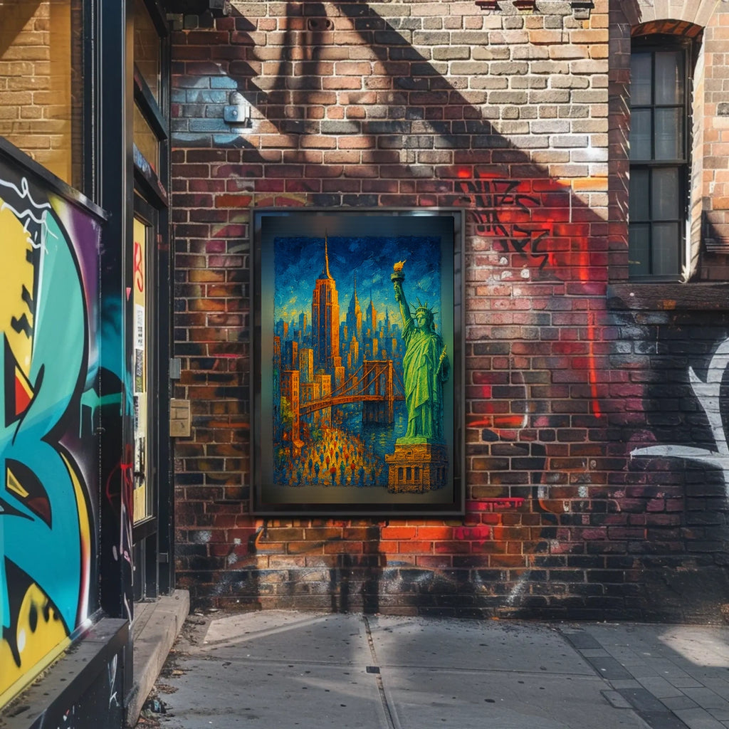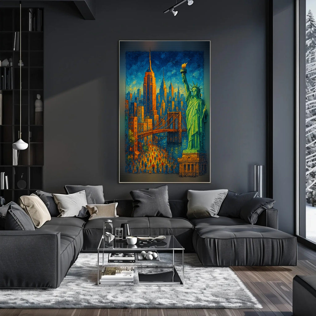 Immerse yourself in the vibrant energy of New York City with the City of Dreams New York Skyline Art Poster. This modern cityscape captures timeless landmarks like the Statue of Liberty through a color-rich composition that makes walls feel alive with possibility. Perfect for living rooms, bedrooms, or home offices, it pairs with metallic accents and minimalist furniture to create a sophisticated urban vignette.