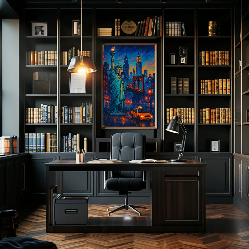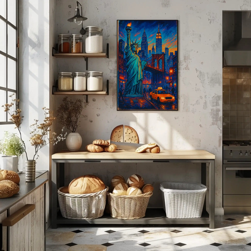 - Iconic NYC centerpiece: The Statue of Liberty and sweeping skyline create an instant Big Apple vibe, elevating any room.