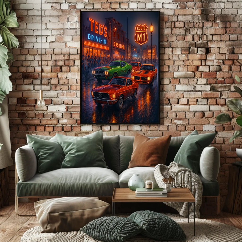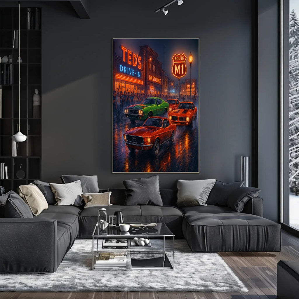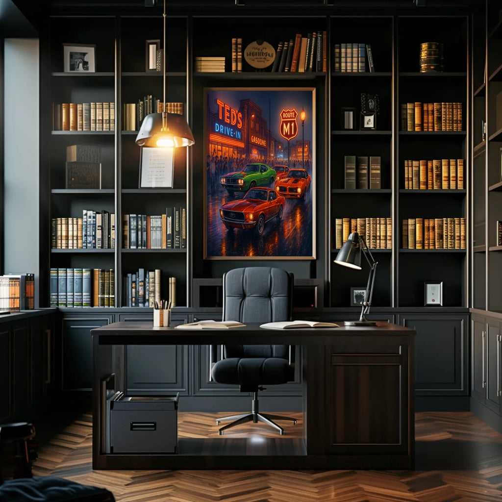 Elevate your space with classic car imagery and a night-time glow that suits any room. This poster is a standout choice for stylish wall art and a memorable gift. Shop now and bring the Route M1 vibe home.
