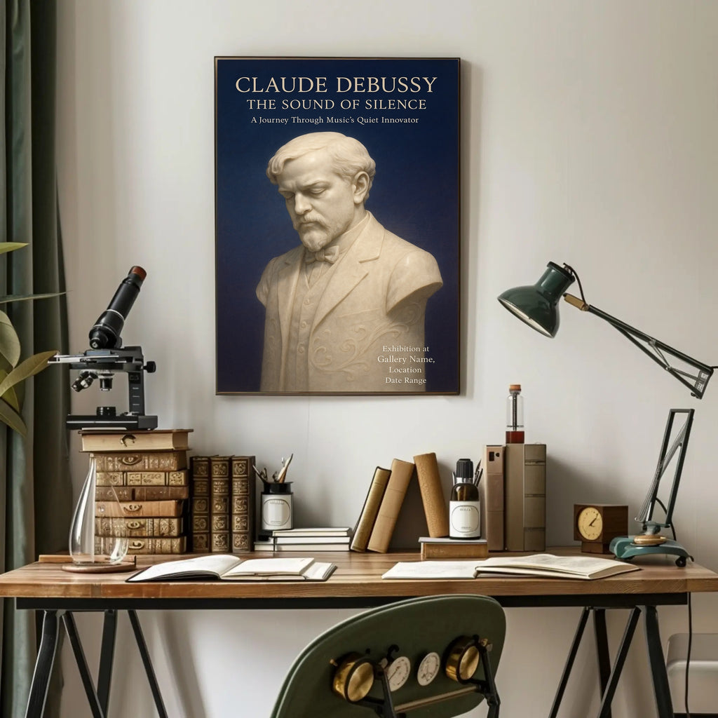 Artistic Design: Features a stunning portrayal of Claude Debussy, blending sophistication and artistry to enhance your living or workspace.