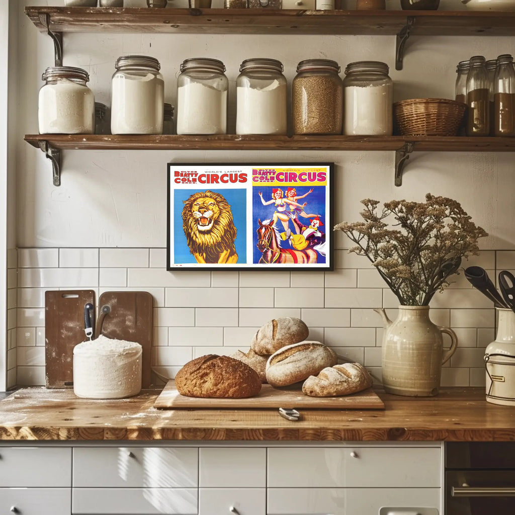 Why collectors choose this print: The composition balances dramatic animal portraiture and lively human performers, delivering both bold wall presence and a rich conversation piece. Printed with archival inks for crisp lines and lasting color, it preserves the charm of classic circus advertising while fitting seamlessly into contemporary decor.